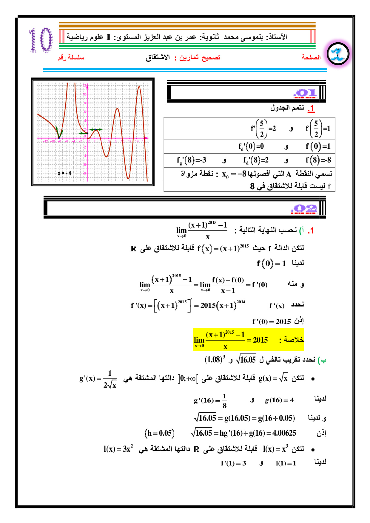 الاشتقاق - تصحيح سلسلة التمارين 3