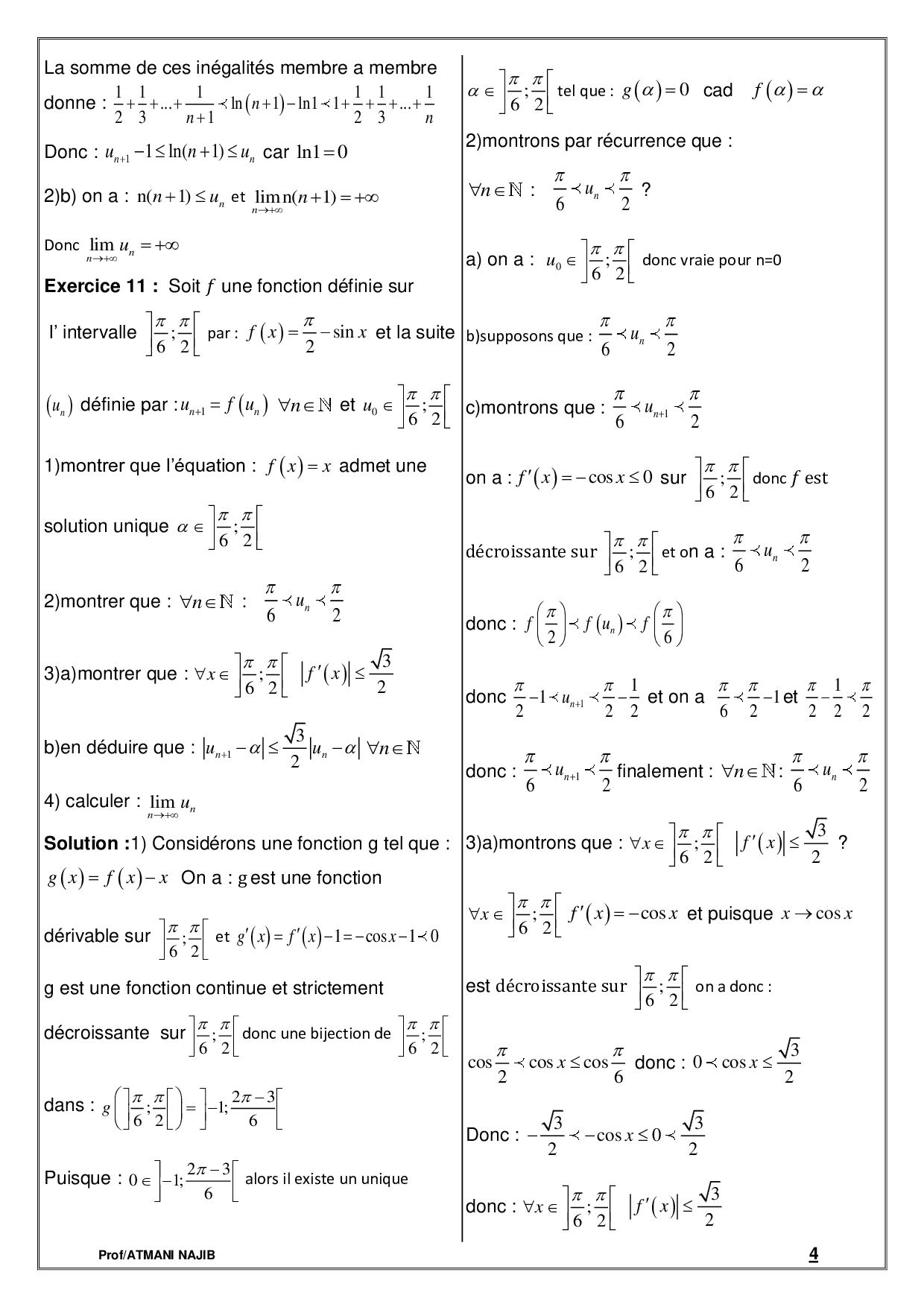 Théorème des Accroissements Finis - Corrigé série d'exercices 1