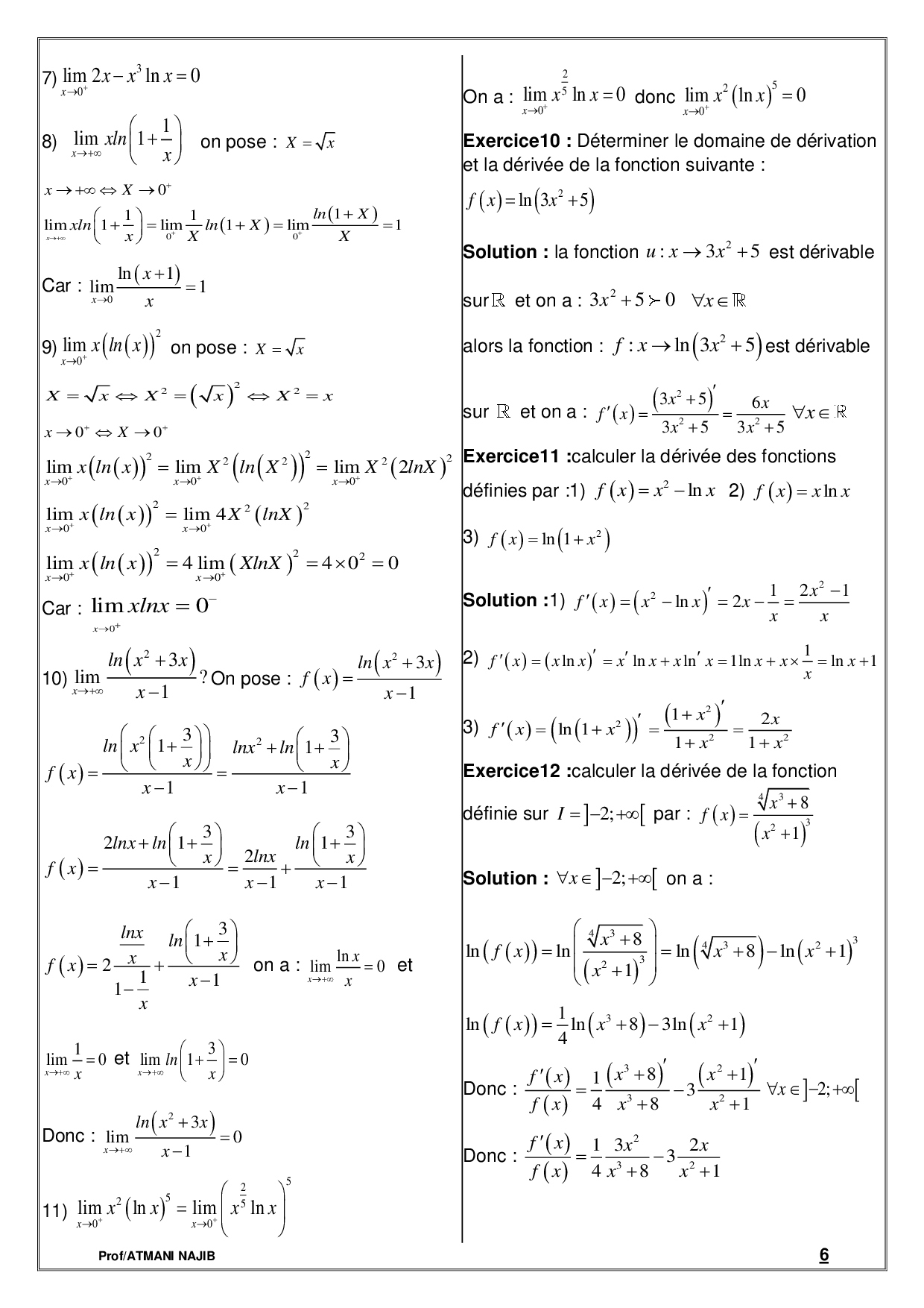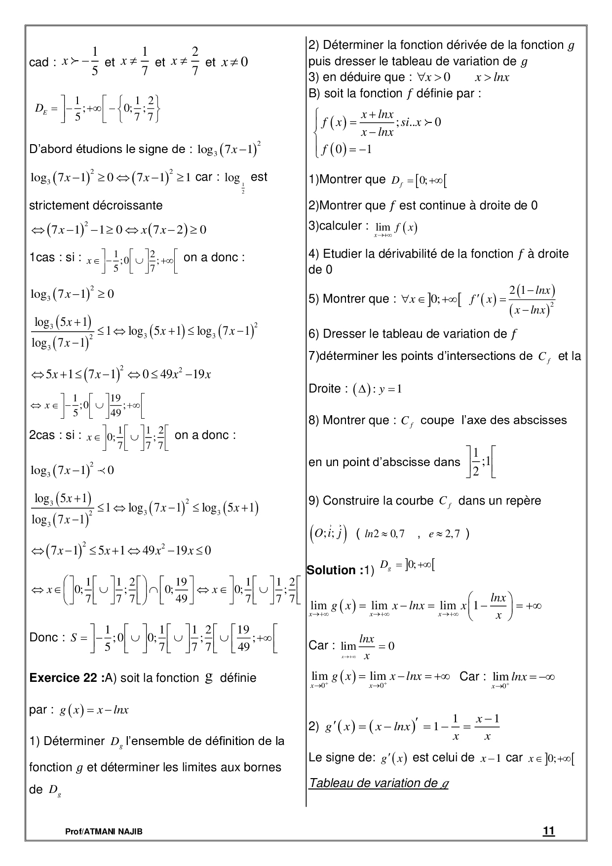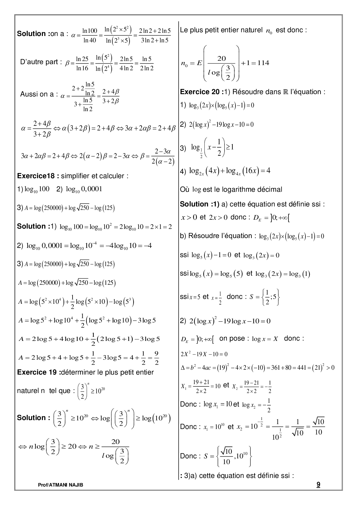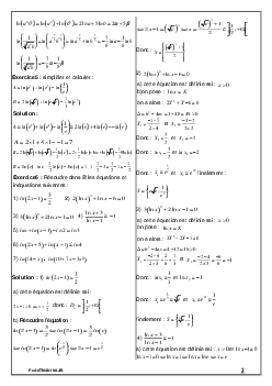 Fonctions logarithmiques - Corrigé série d'exercices 1