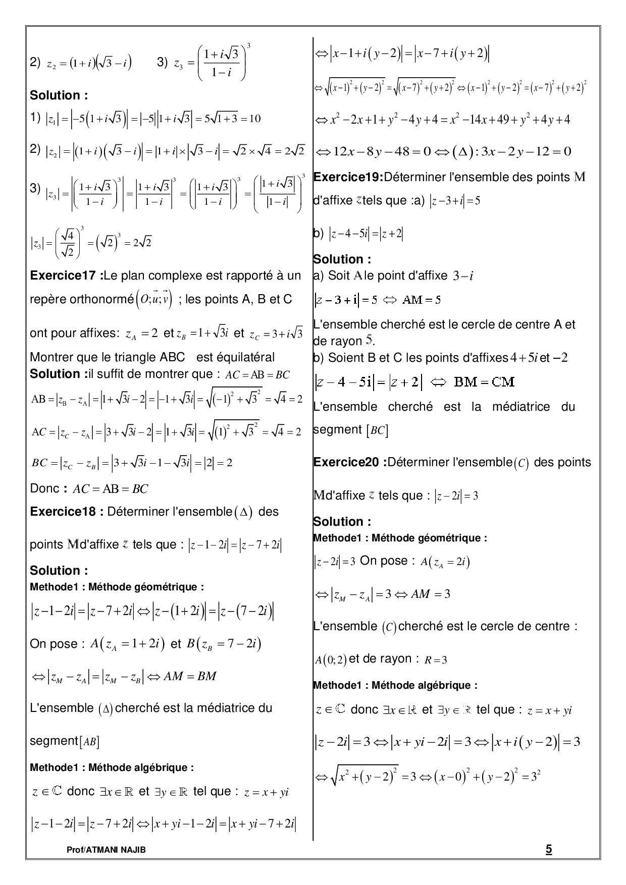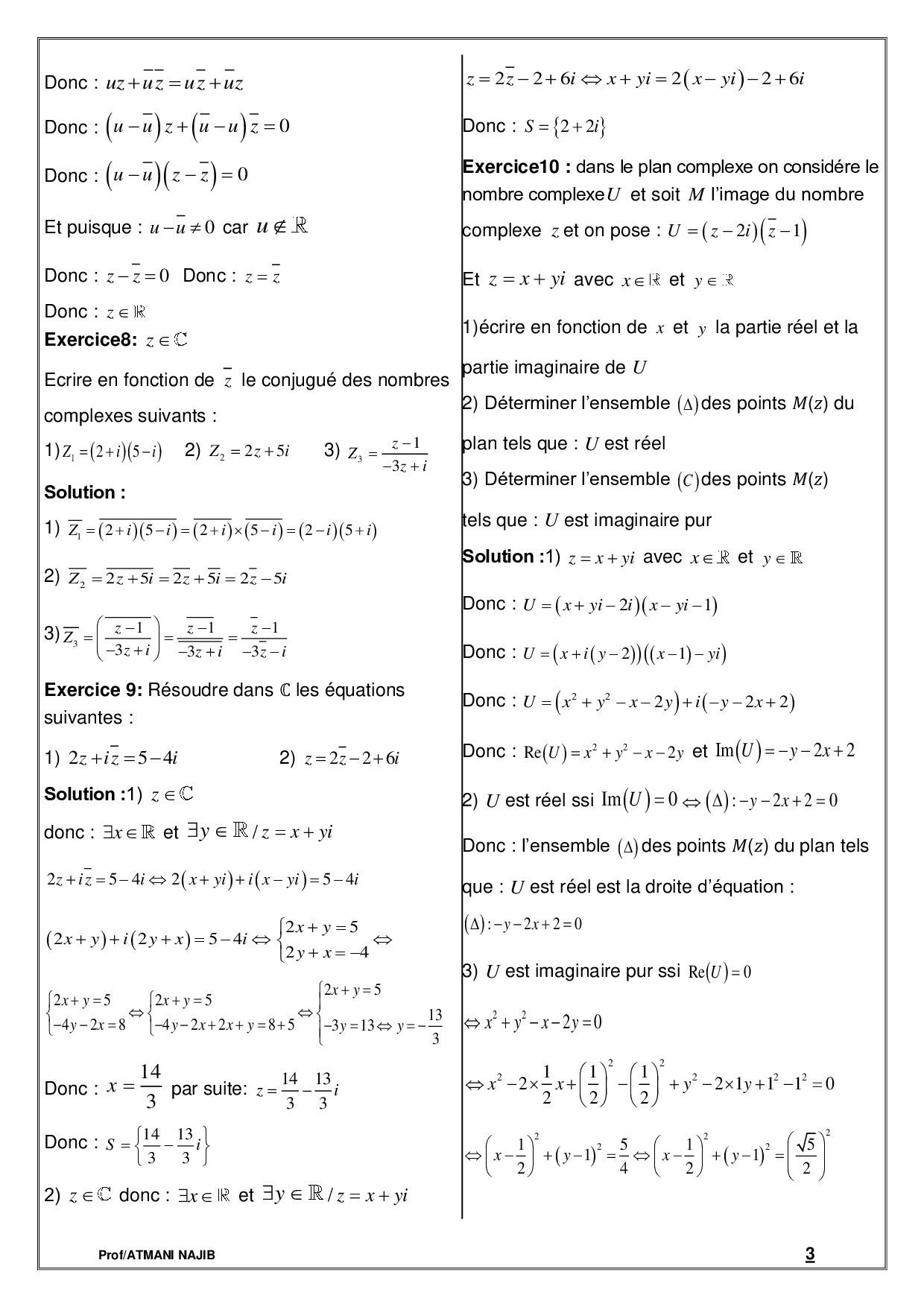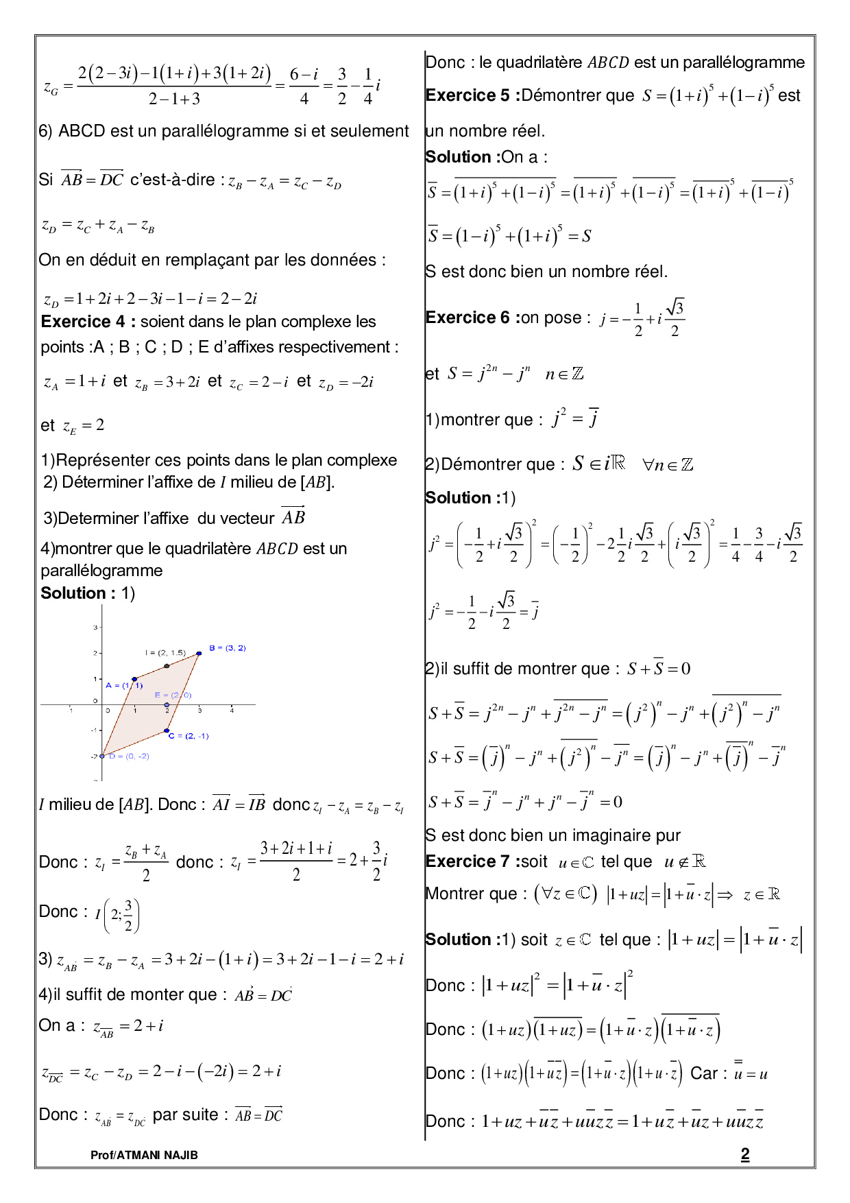 Nombres complexes 1 - Corrigé série d'exercices 1