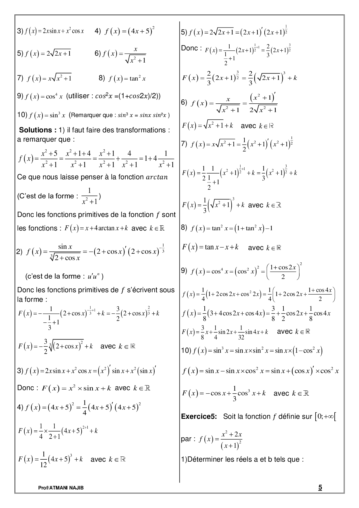 Fonctions primitives - Cours et exercices corrigés