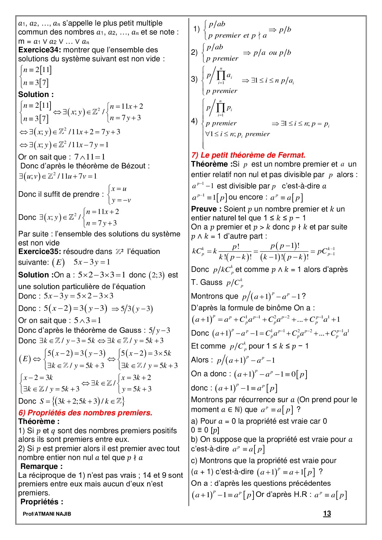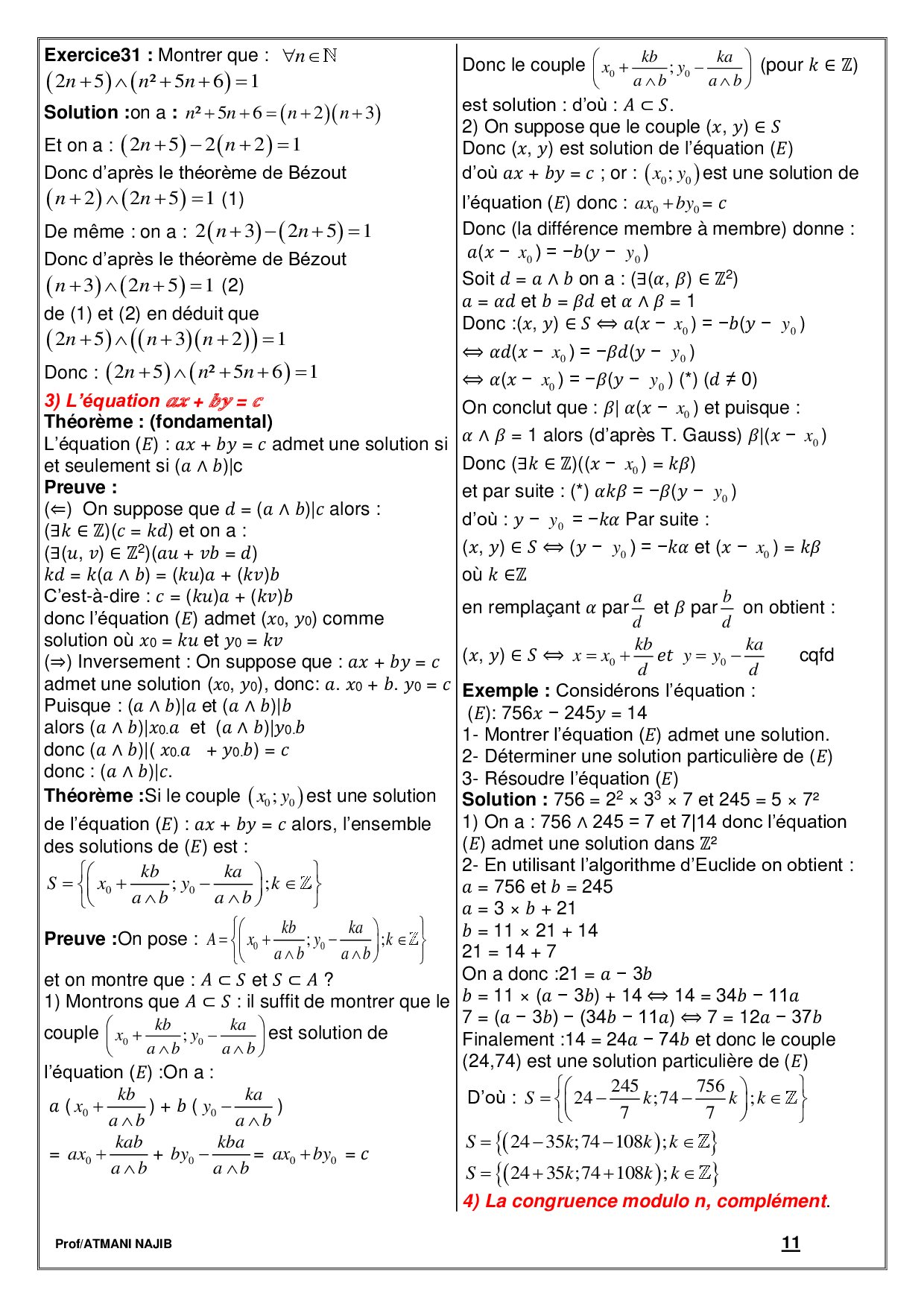 Arithmétique - Cours et exercices corrigés