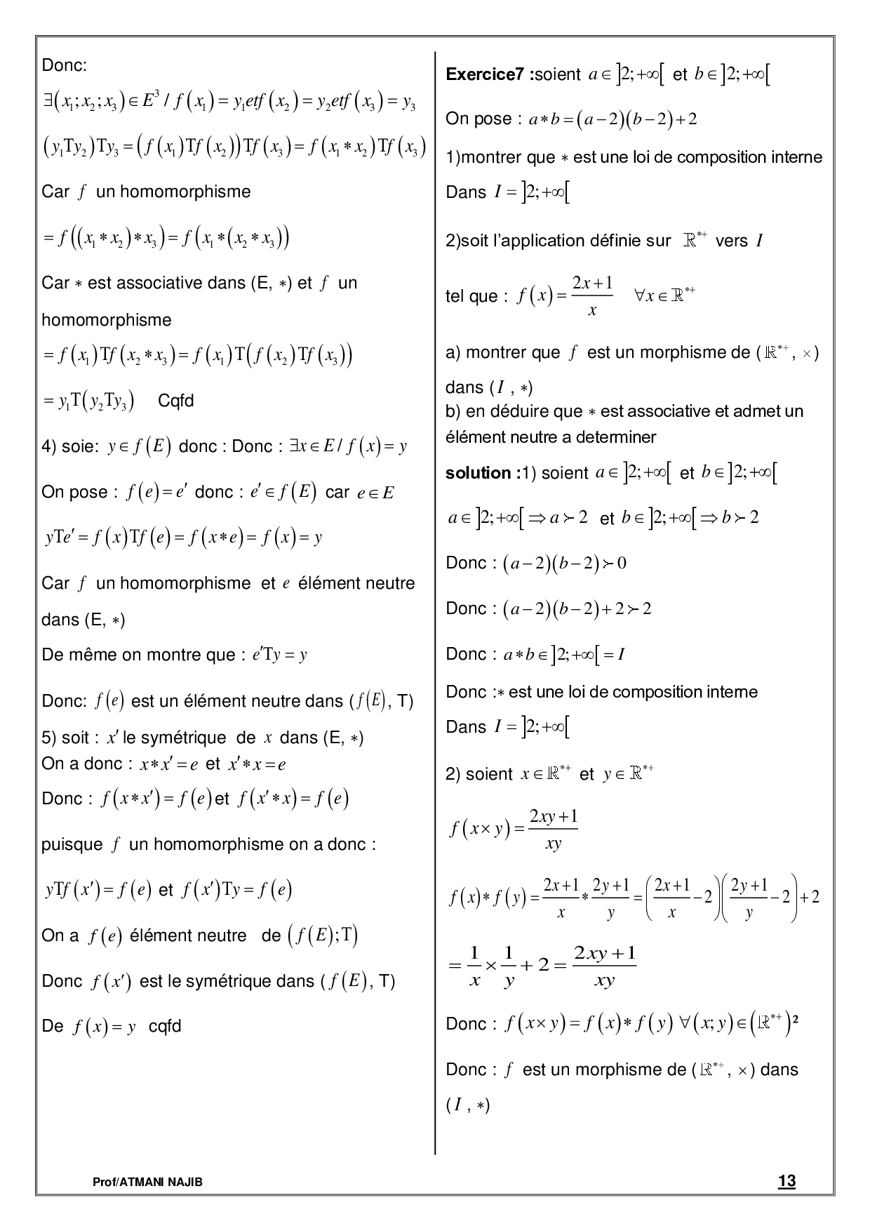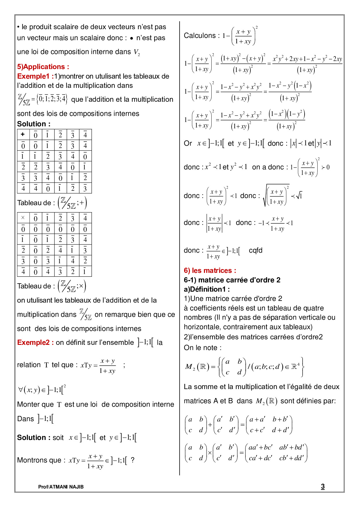 Lois de composition interne - Cours et exercices corrigés