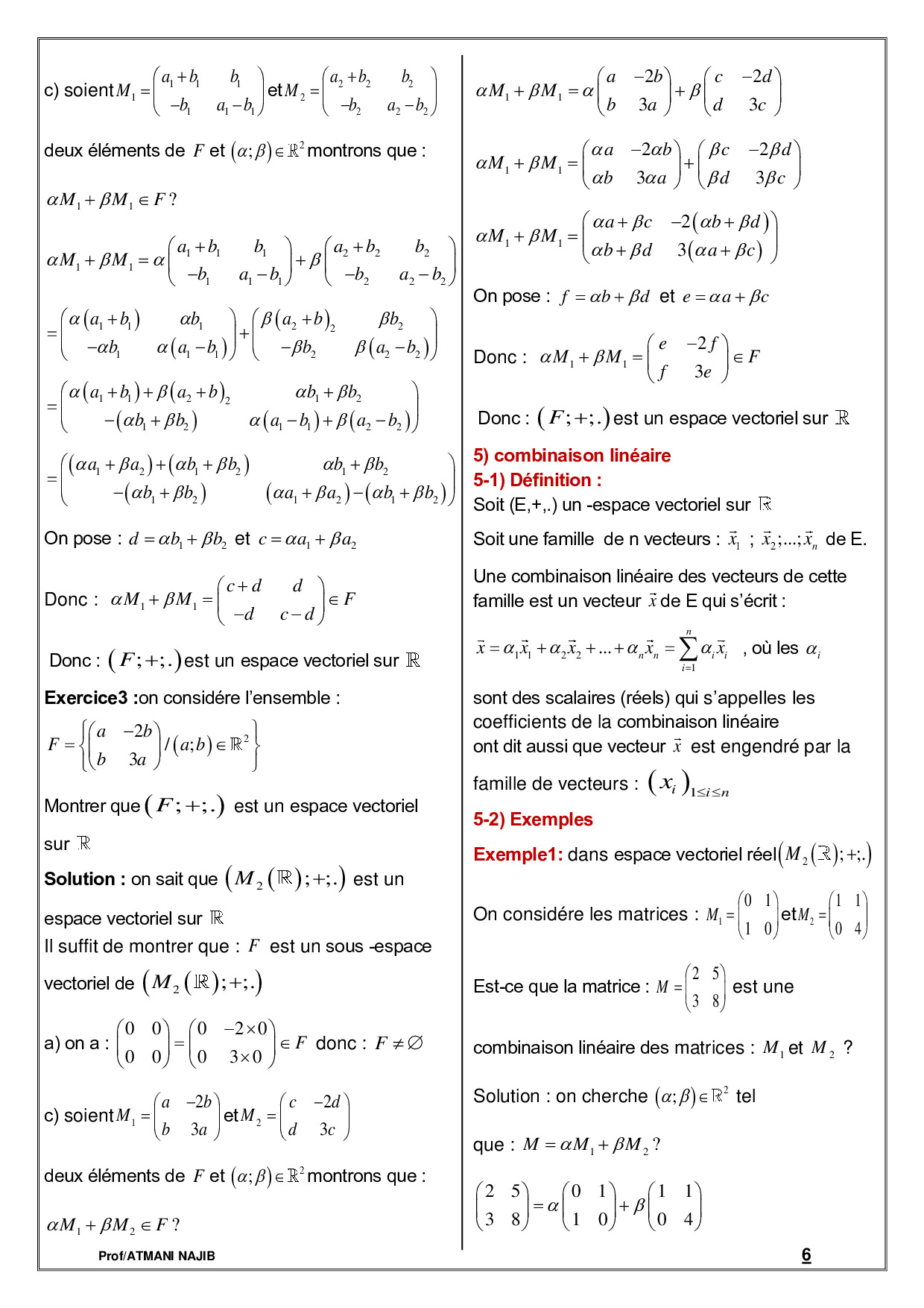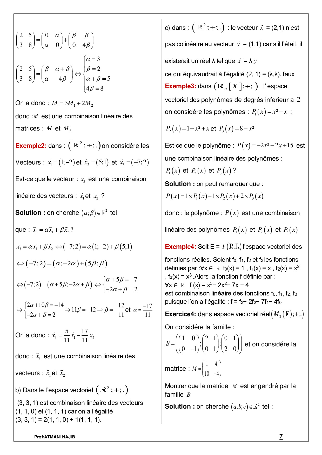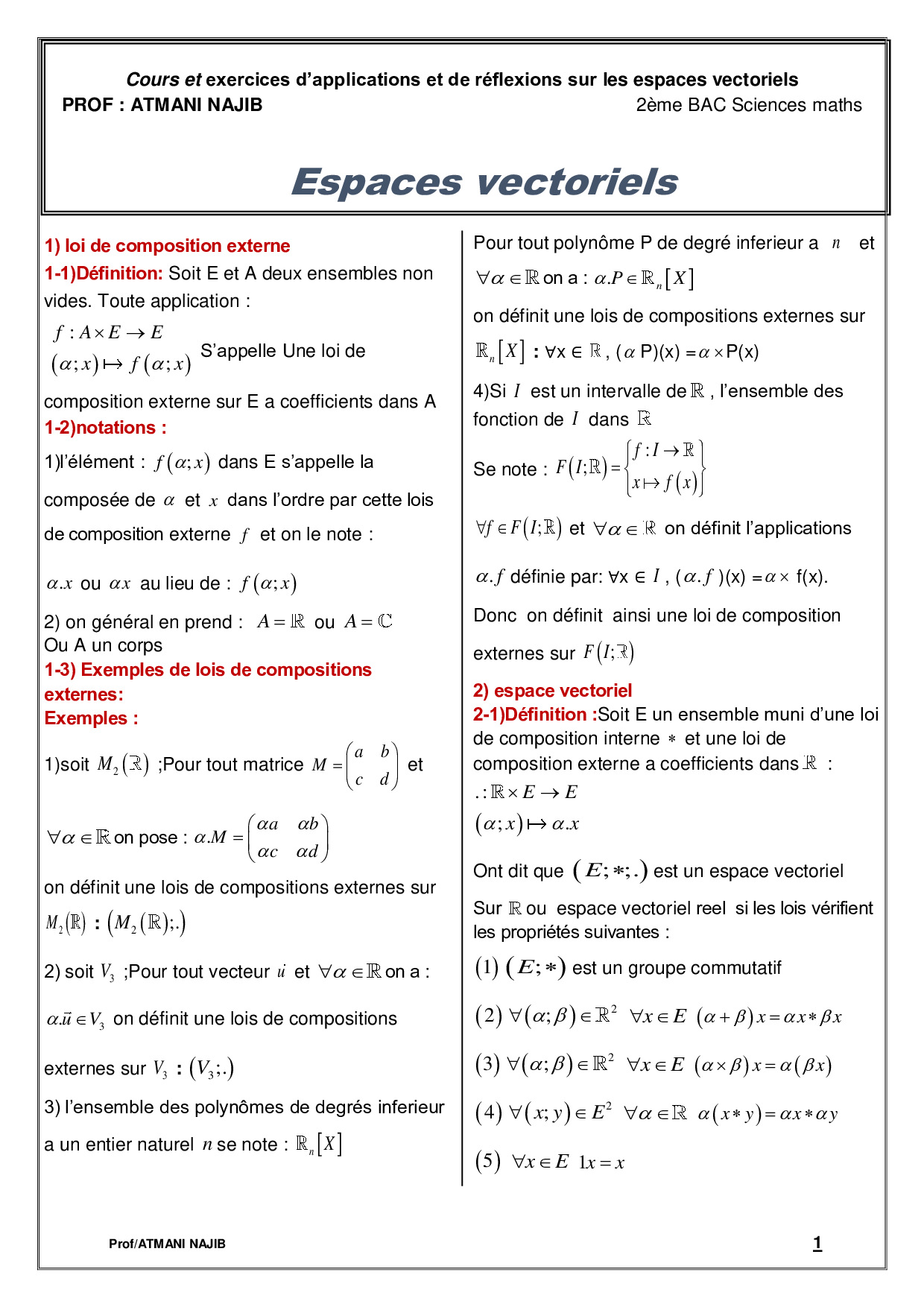 Espaces vectoriels - Cours et exercices corrigés