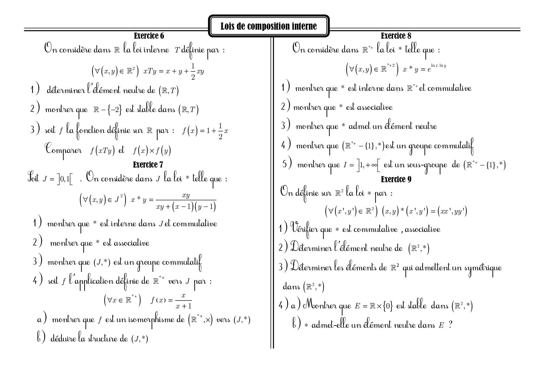 Lois de composition interne - Exercices non corrigés 2