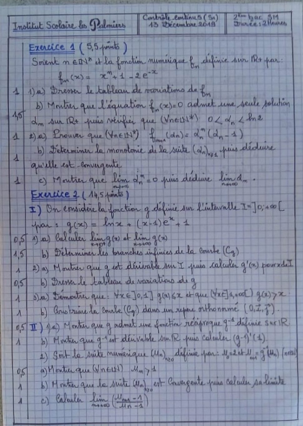 Devoir 5 Modèle 1 - Mathématiques 2 Bac SM Semestre 1