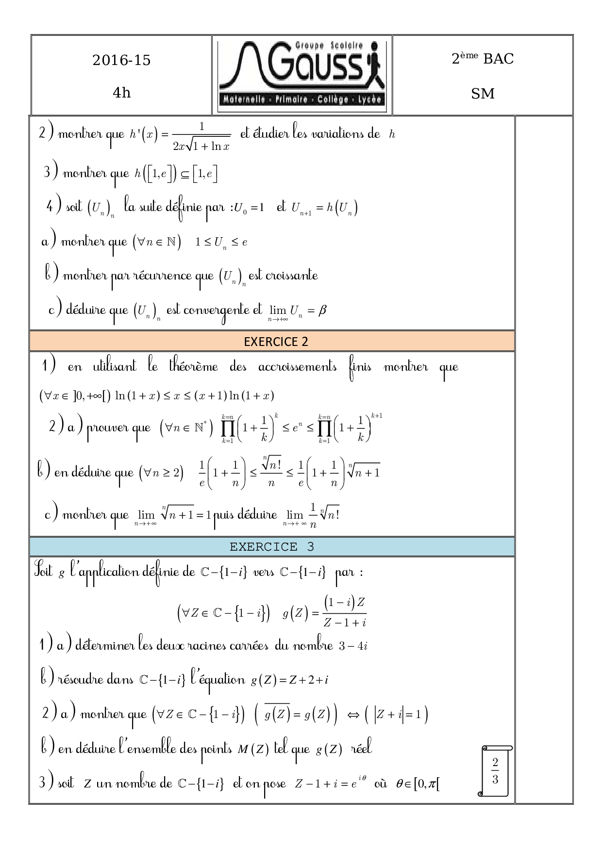 Mathématiques 2ème BAC Sciences Mathématiques B BIOF