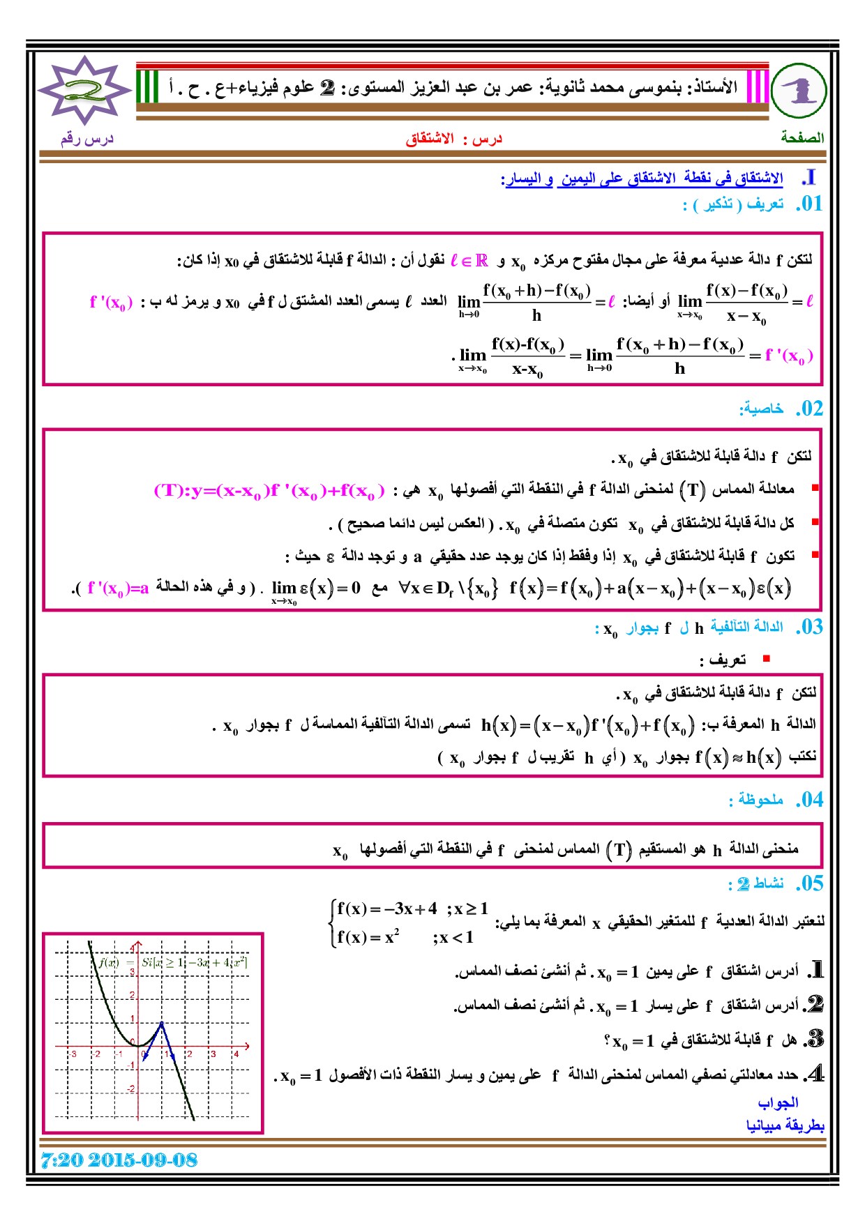 الرياضيات: الثانية باك علوم وتكنولوجيات ميكانيكية