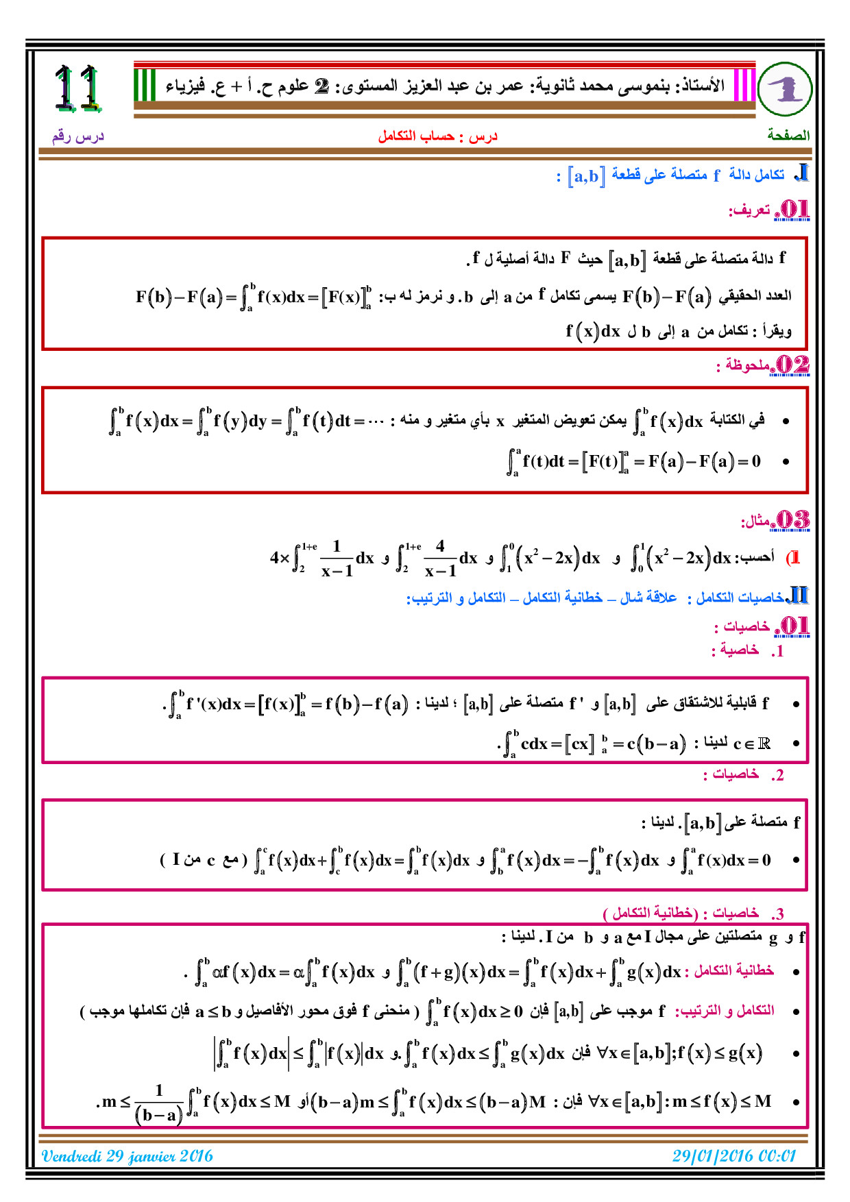 الحساب التكاملي - الدرس 1