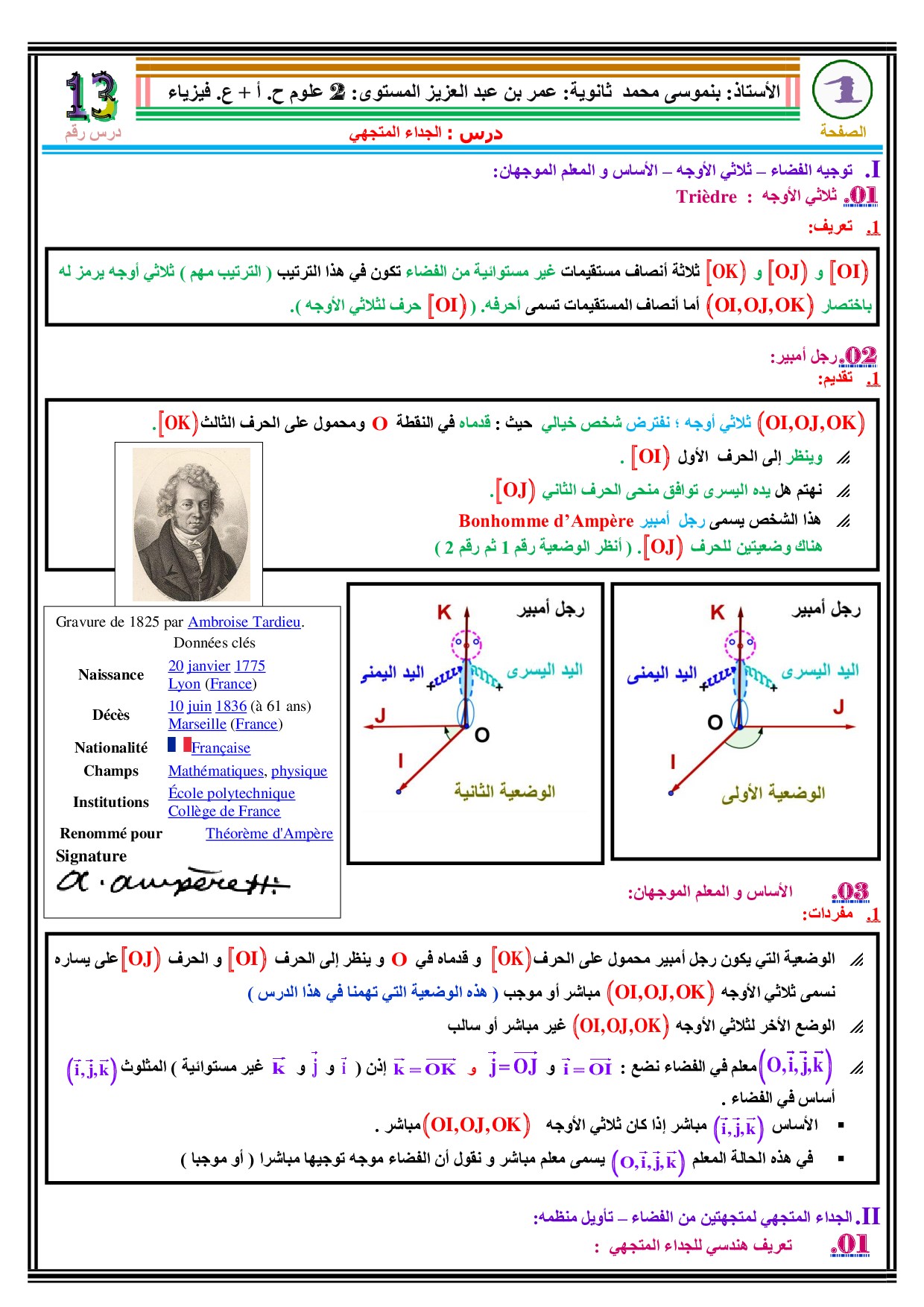 الهندسة الفضائية (الجداء السلمي في الفضاء - الفلكة - الجداء المتجهي)