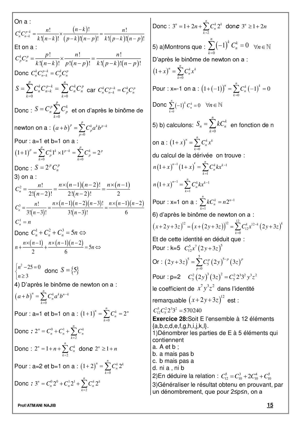 Dénombrement - Cours et exercices corrigés