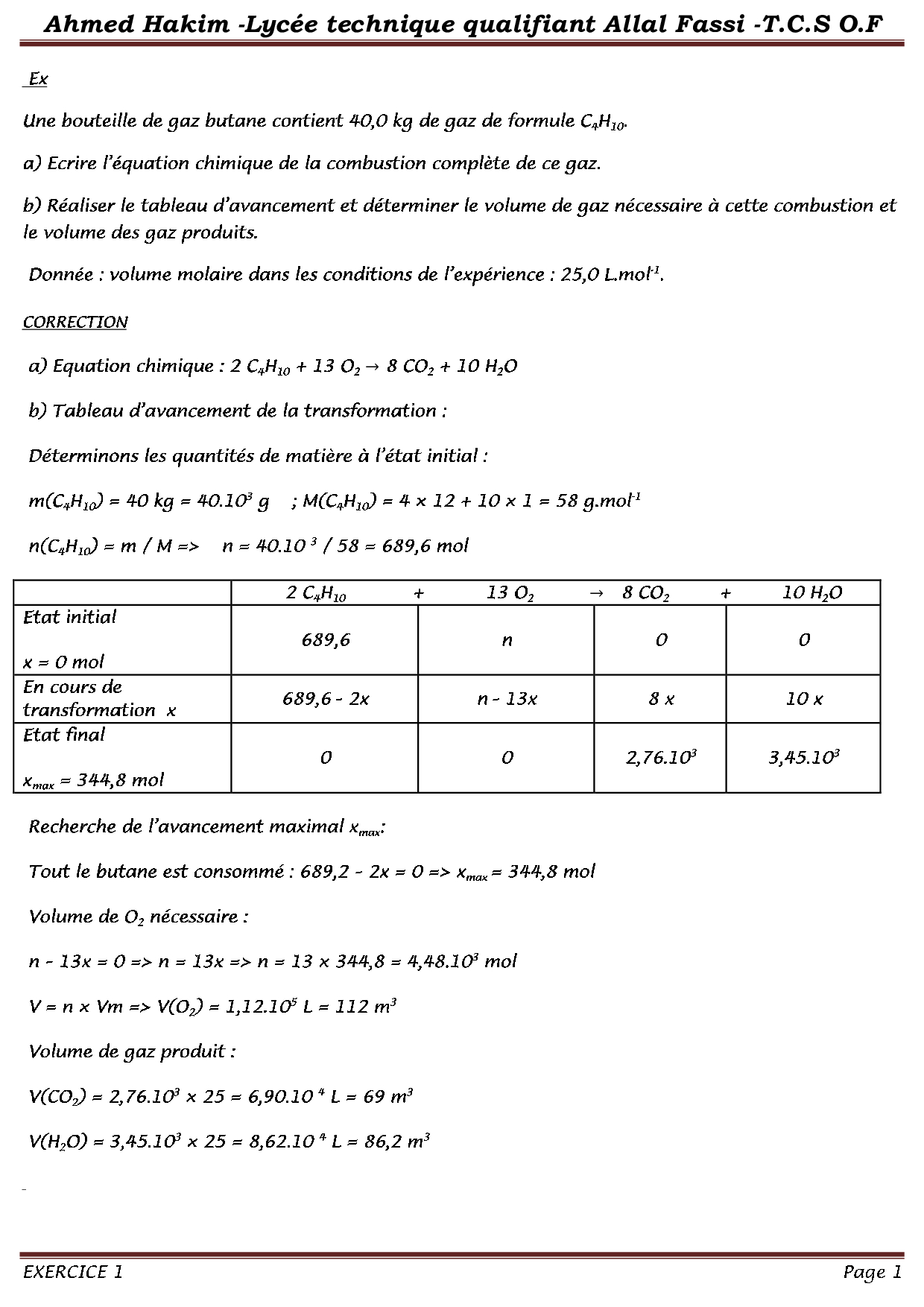 Bilan de la matière - Exercices corrigés 1