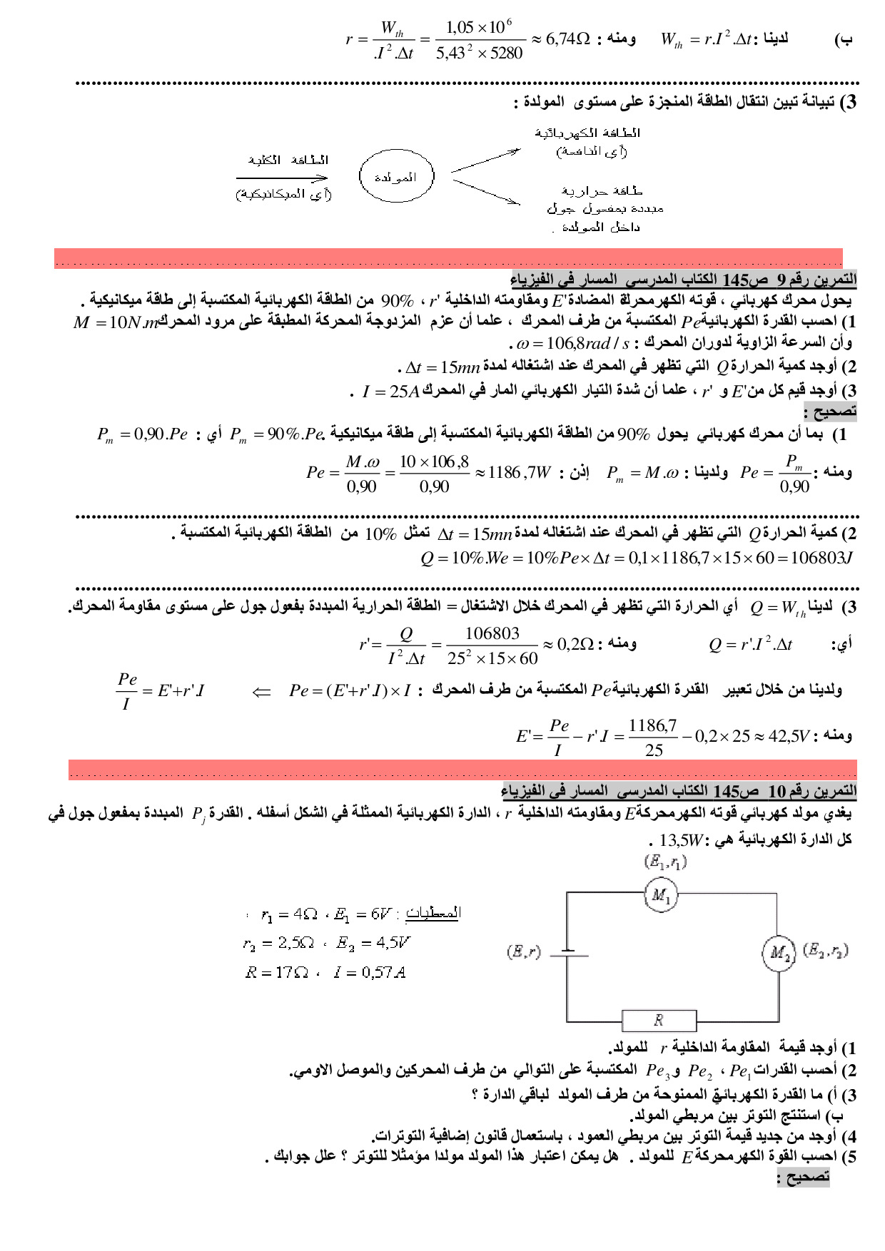 انتقال الطاقة في دارة كهربائية - تمارين محلولة 1