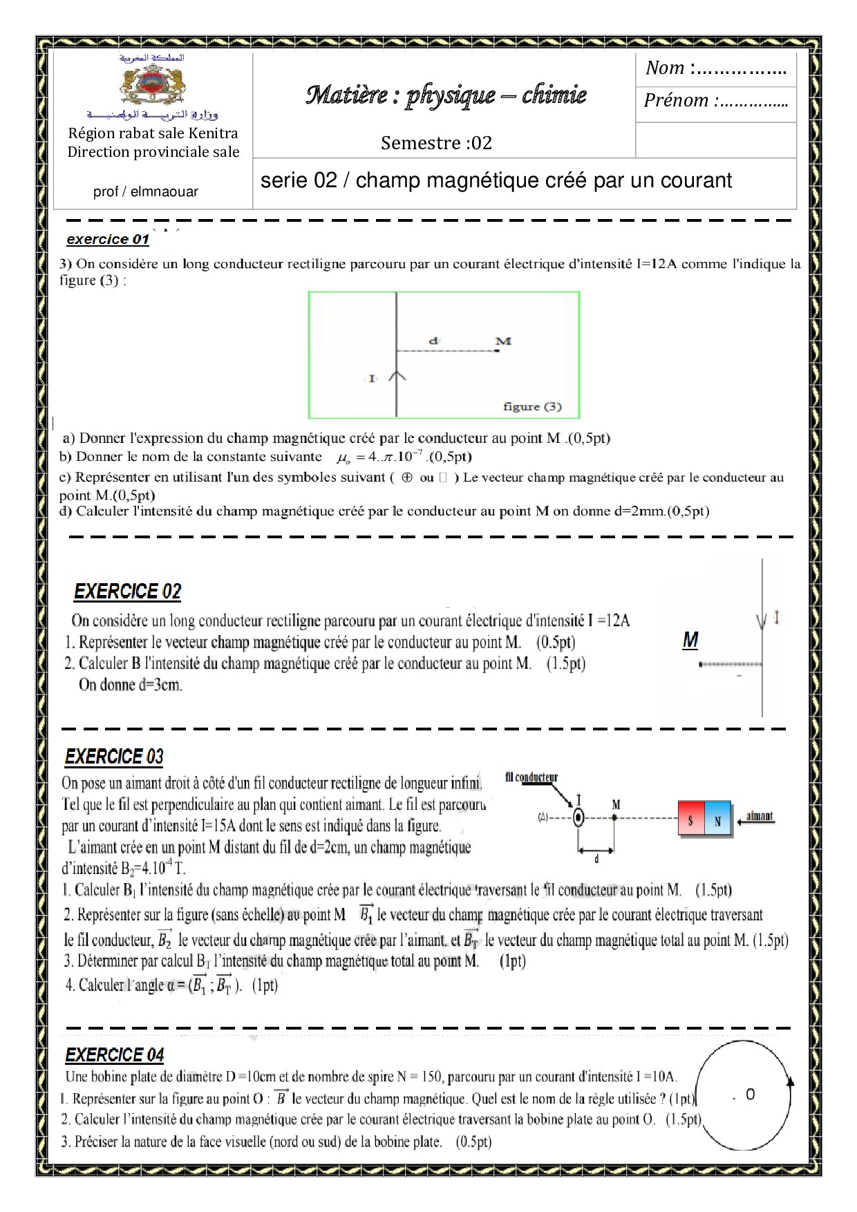 Le champ magnétique crée par un courant électrique - Exercices non corrigés 1