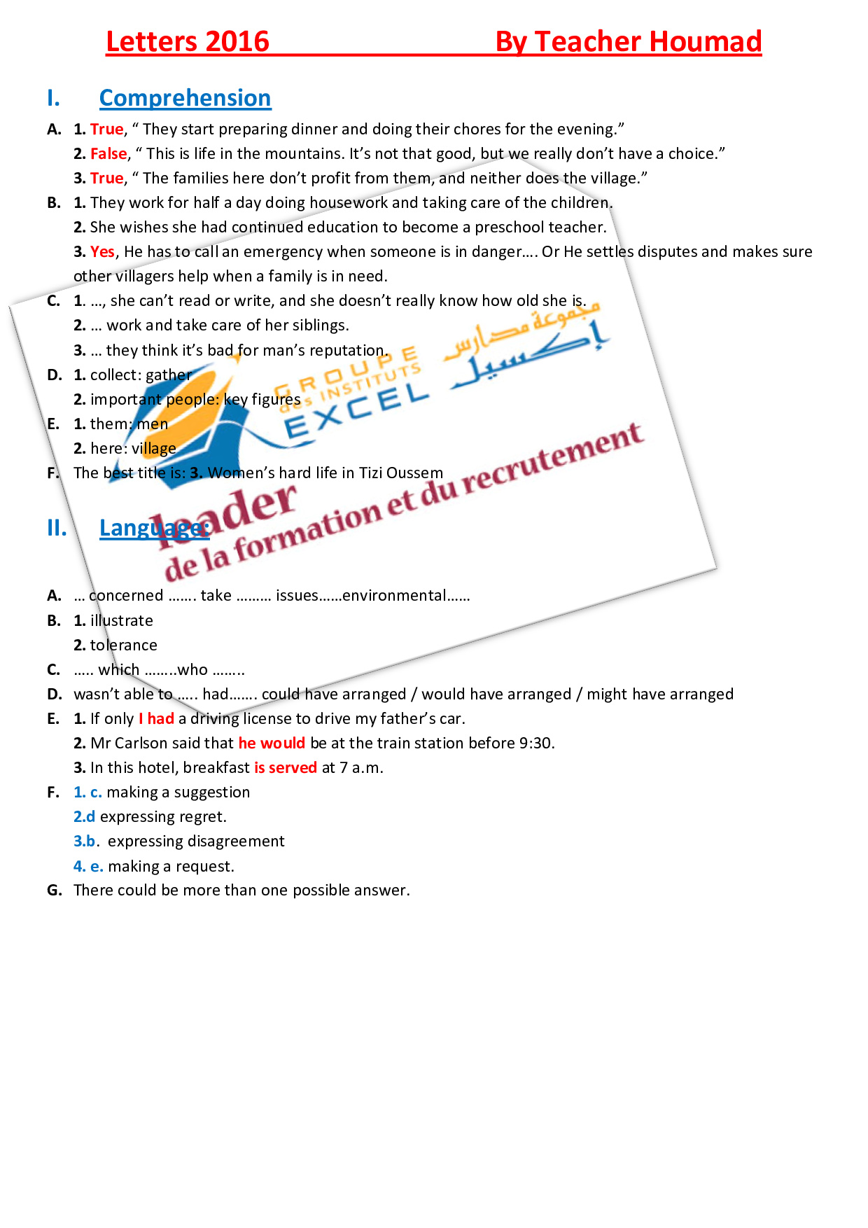 Examen Anglais Lettres 2016 Session Normale - Corrigé
