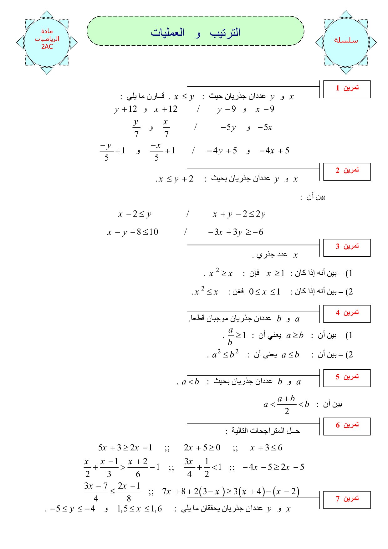 الترتيب والعمليات - تمارين غير محلولة 2