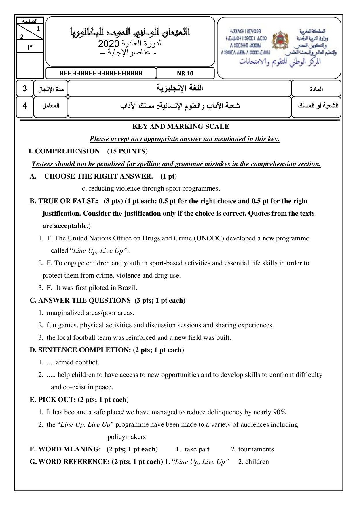 Examen Anglais Lettres 2020 Session Normale - Corrigé