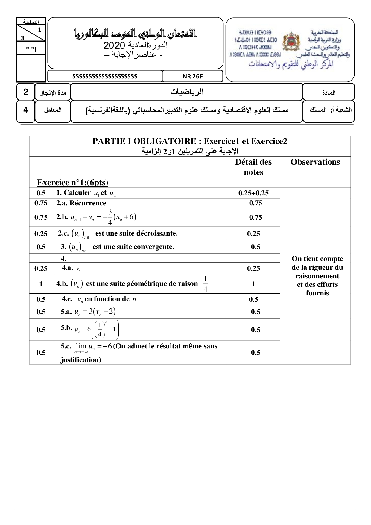 Examen National Maths 2Bac Eco-SGC 2020 Normale - Corrigé