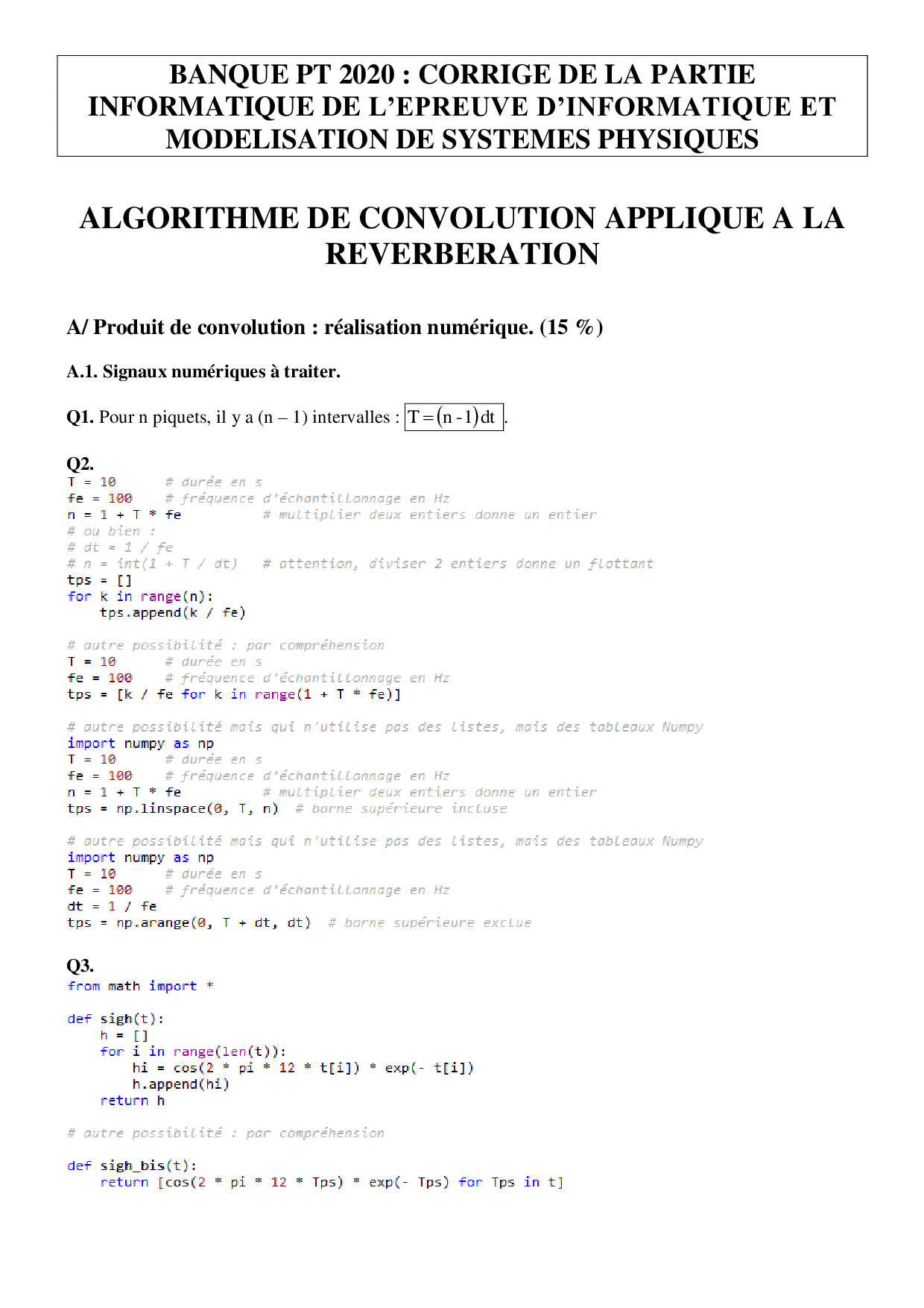 Banque PT 2020 Informatique et Modélisation - Corrigé