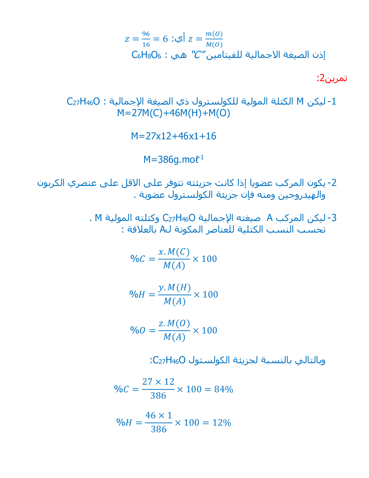 توسع الكيمياء العضوية - تصحيح سلسلة التمارين 1
