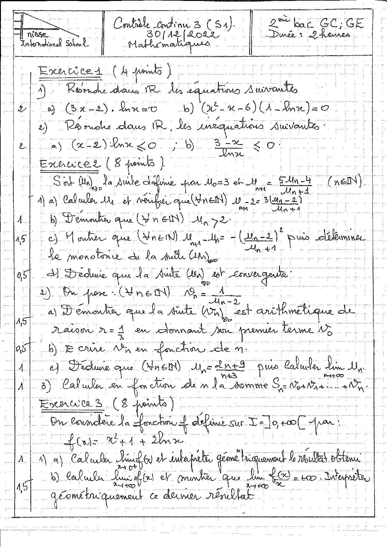 Devoir 3 Modèle 8 - Mathématiques 2 Bac Eco-SGC Semestre 1