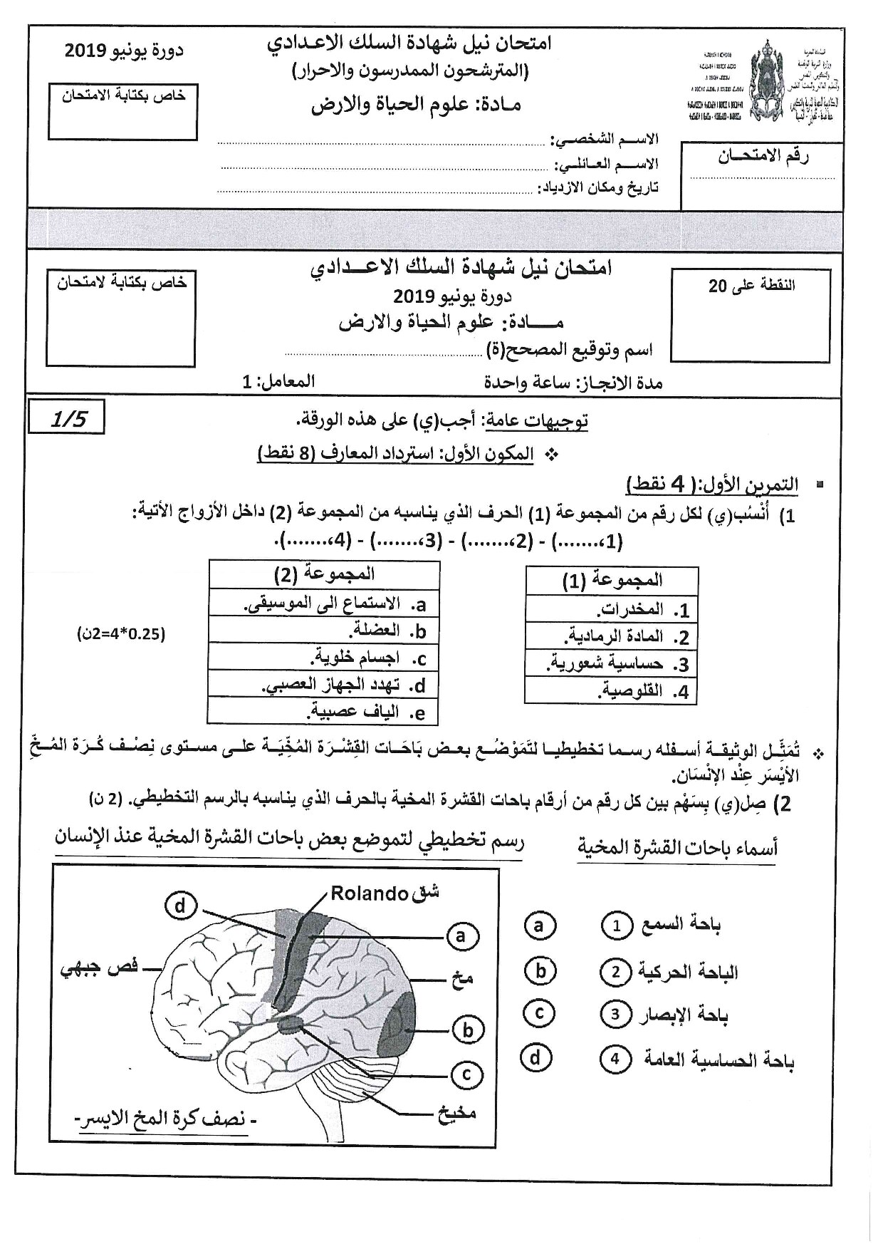 Examen régional SVT 3AC 2019 (Tanger-Tétouan-Al Hoceïma) - Sujet