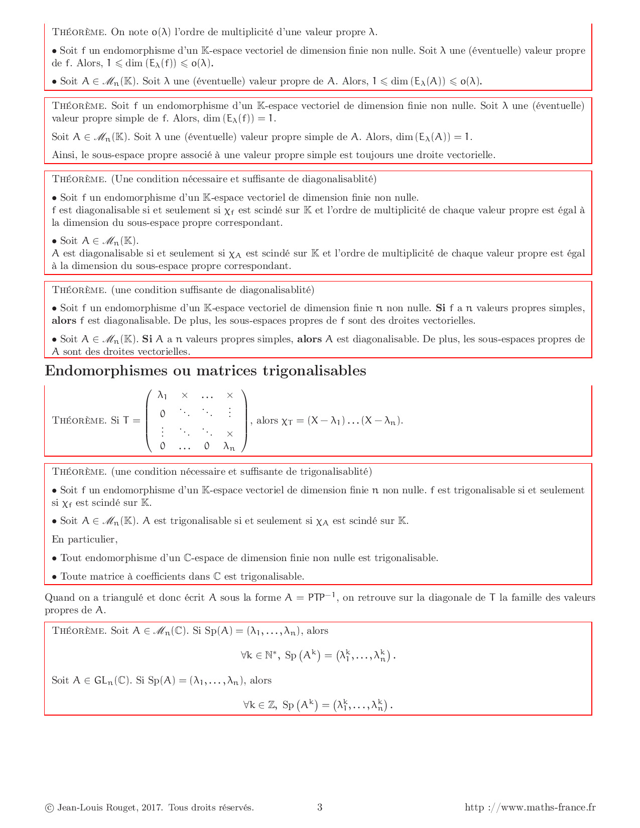 Théorèmes Réduction des endomorphismes et des matrices carrées
