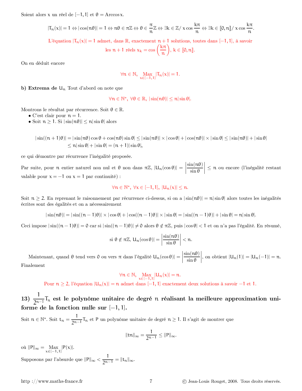 Polynômes de Tchebychev