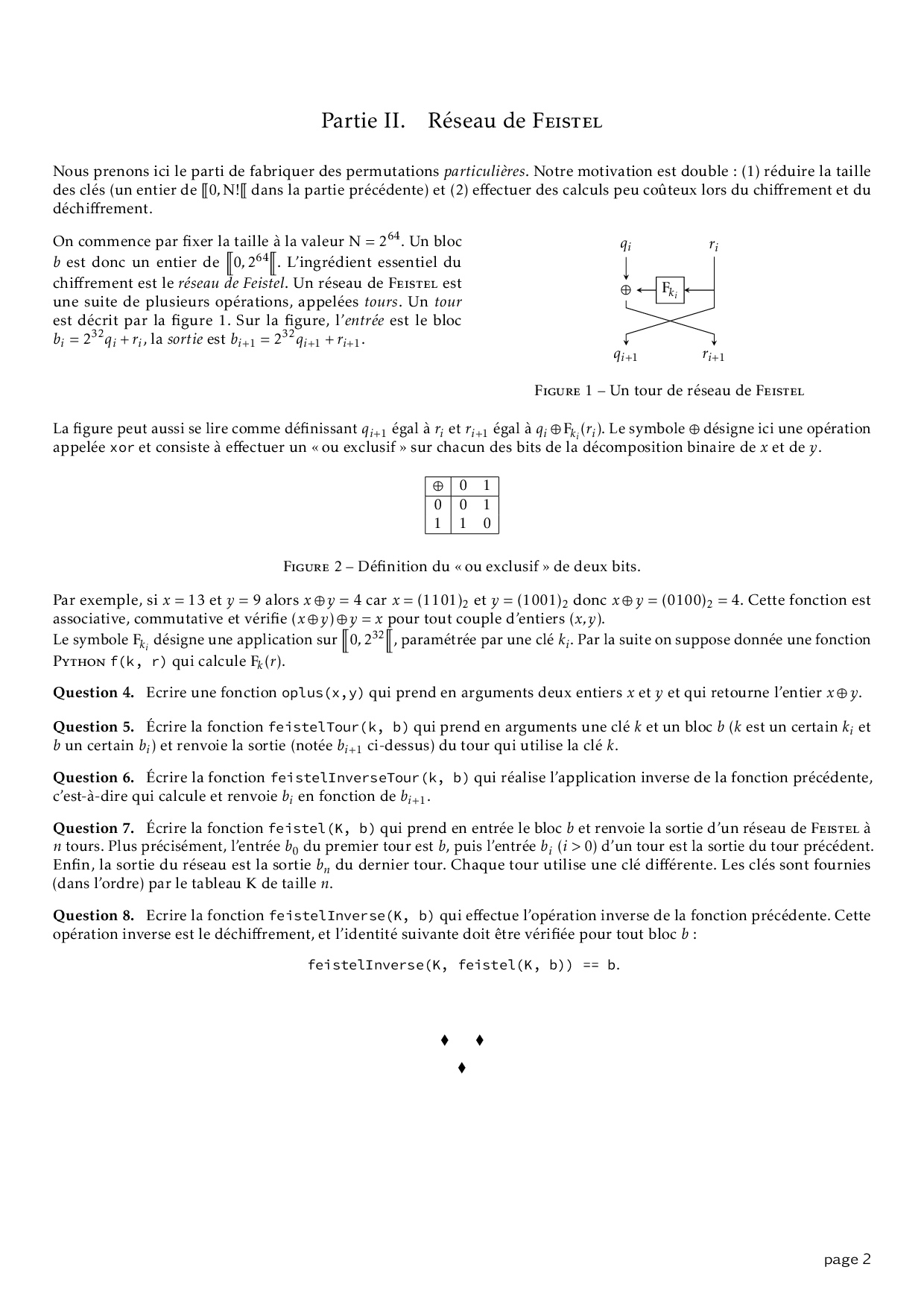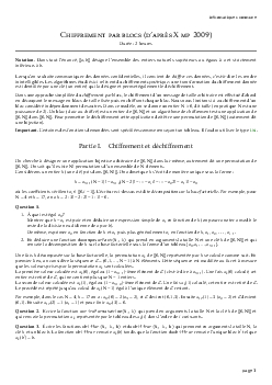 Devoir 12 : Chiffrement par blocs (X MP 2009) : Épreuve