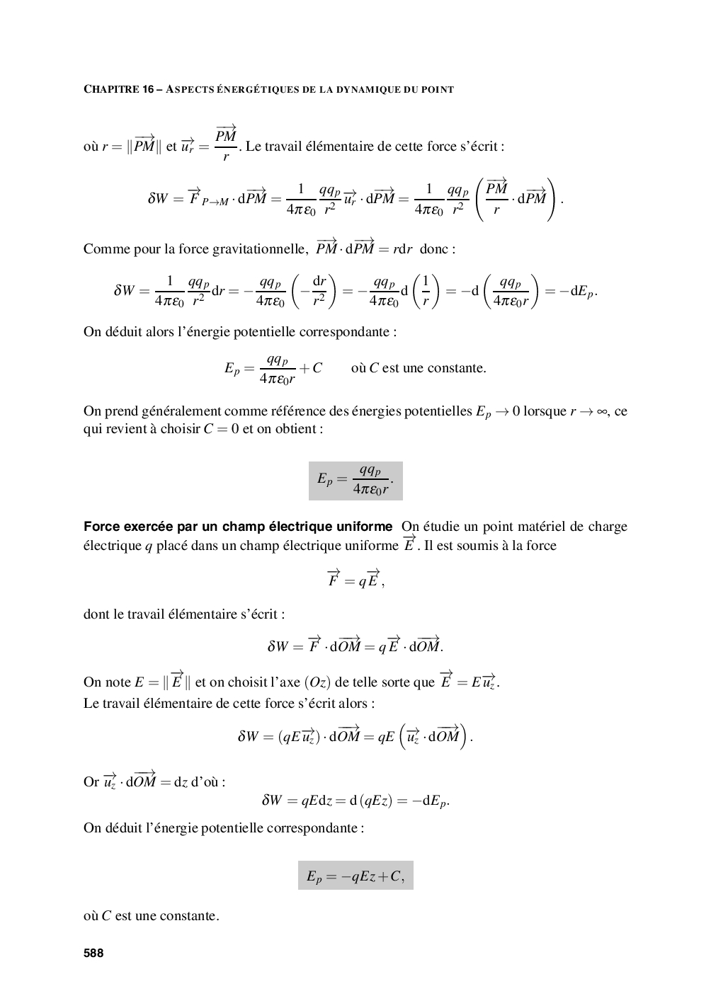 Aspects énergétiques de la dynamique du point