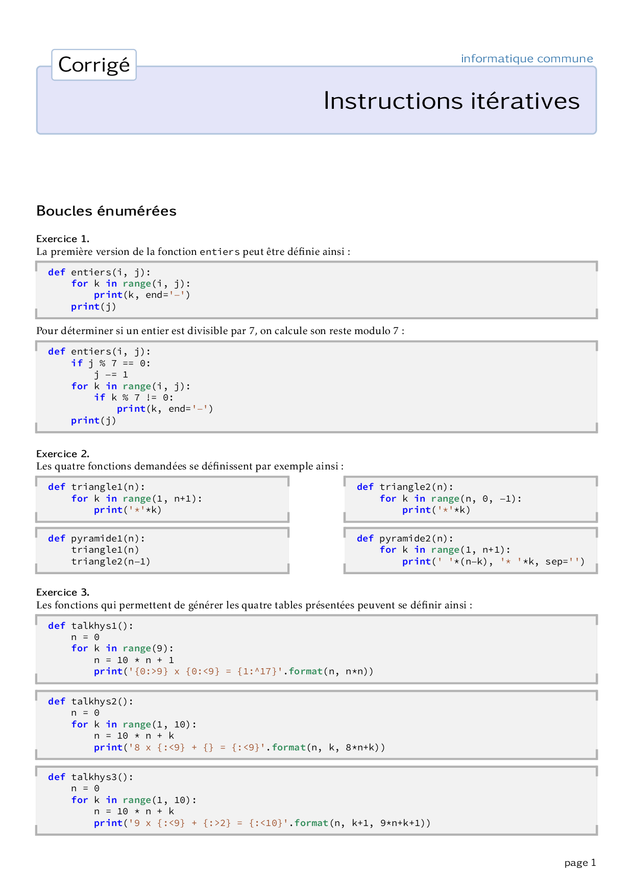 Série 2 - Instructions itératives (Enumérations et boucles conditionnelles) : Corrigés