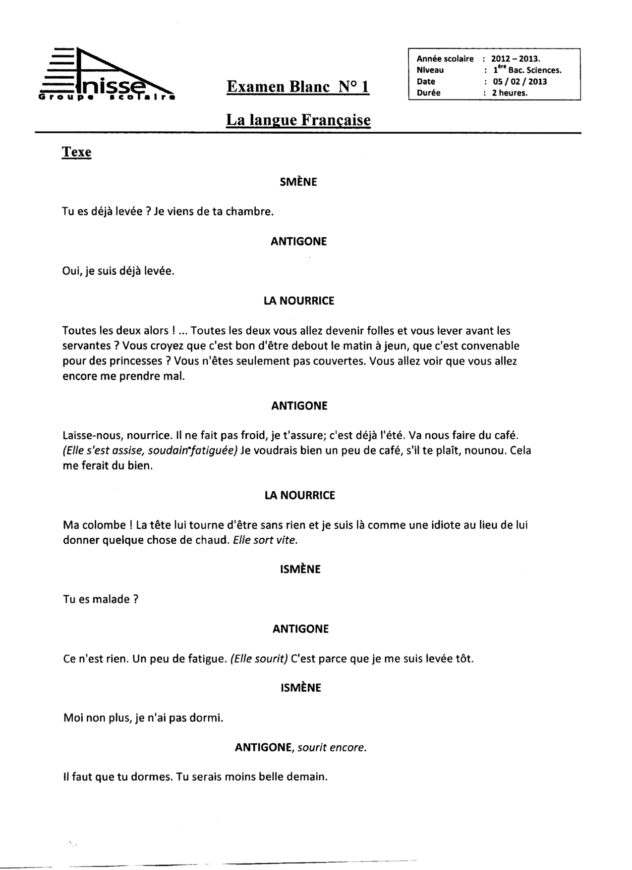 Français: 1er BAC Sciences et Technologies Mécaniques