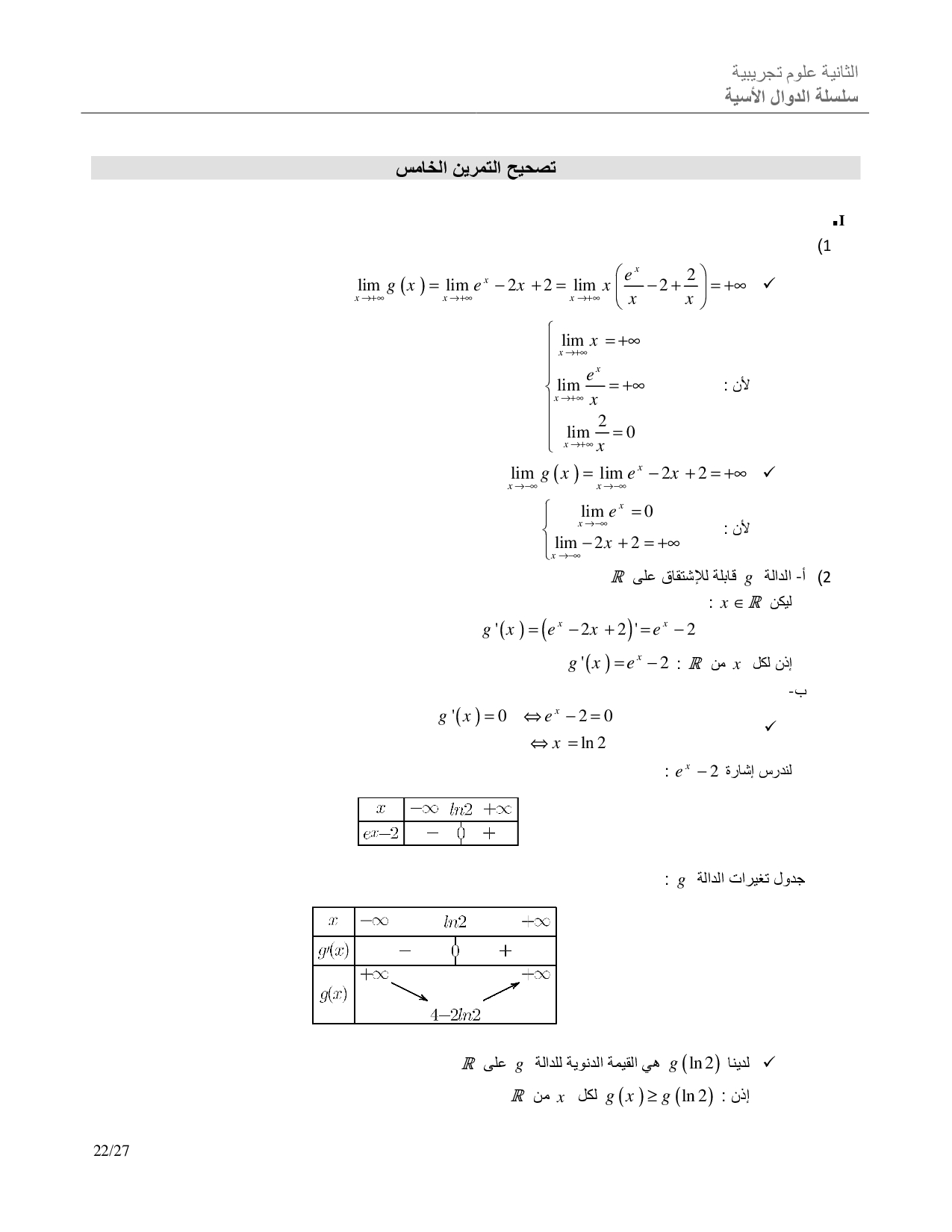 الدوال الأسية - تصحيح سلسلة التمارين 1