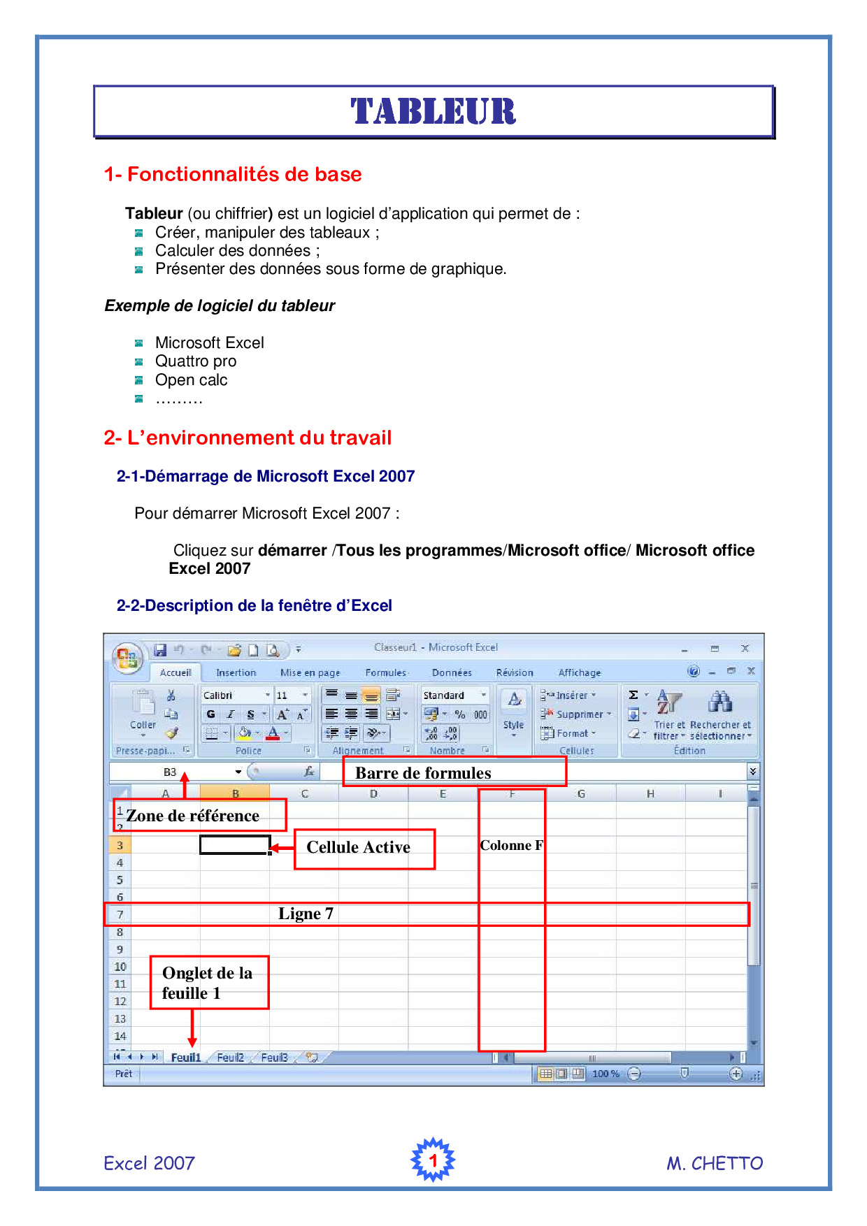 Tableur Excel
