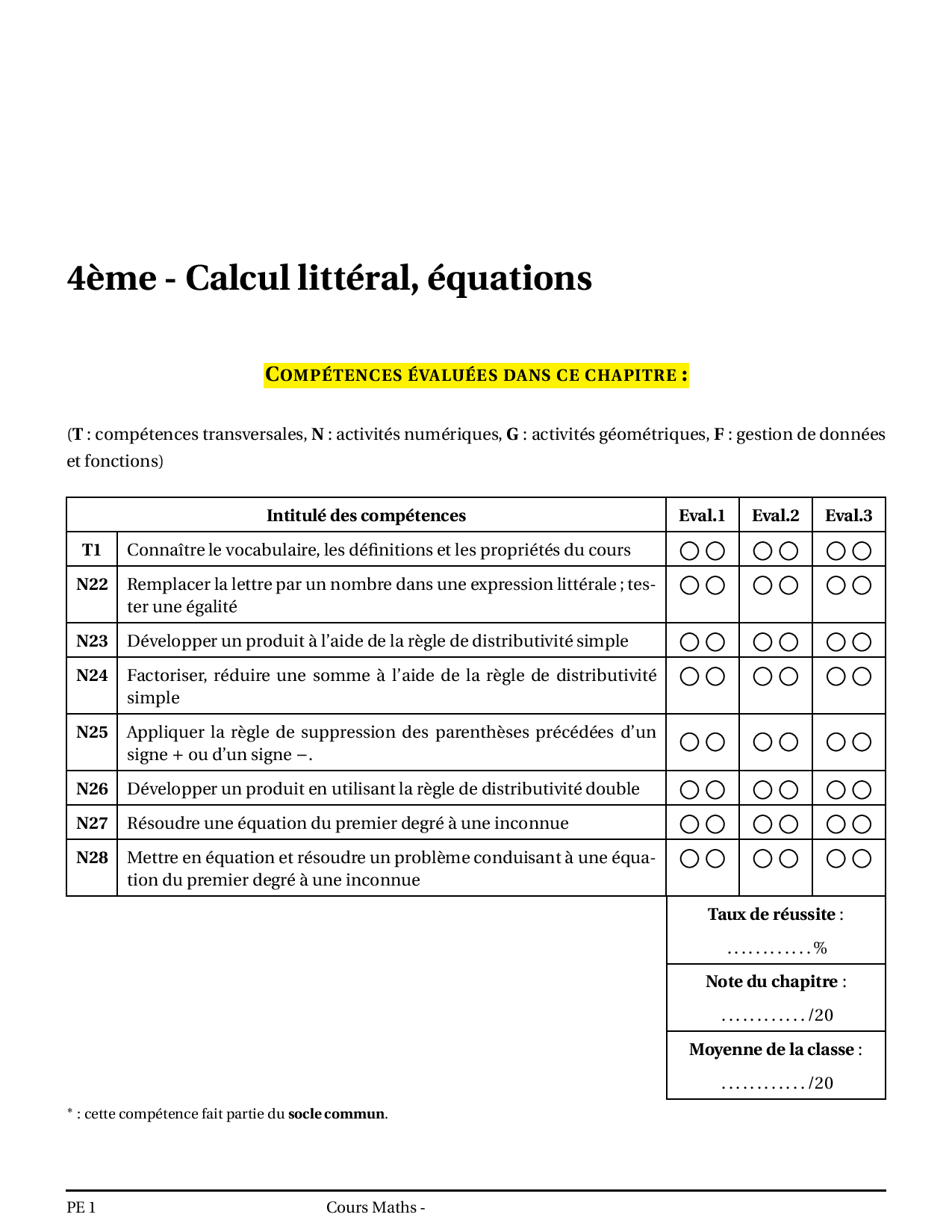 Calcul littéral et équations - Cours