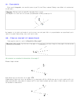 Distance et tangente - Bissectrice et cercle inscrit - Cours