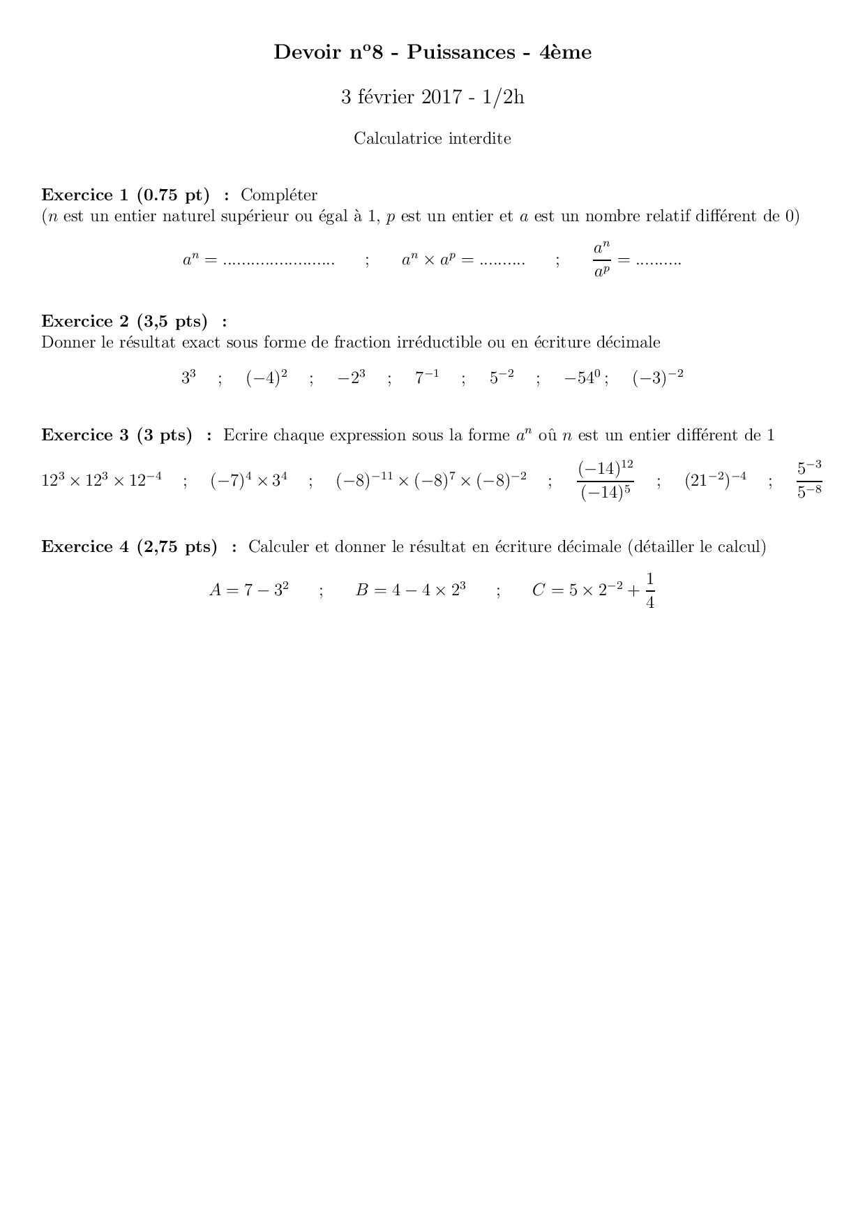 Devoir 3 (Puissances)