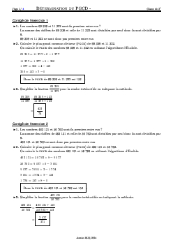 PGCD (Plus Grand Commun Diviseur) - Corrigé série d'exercices 1