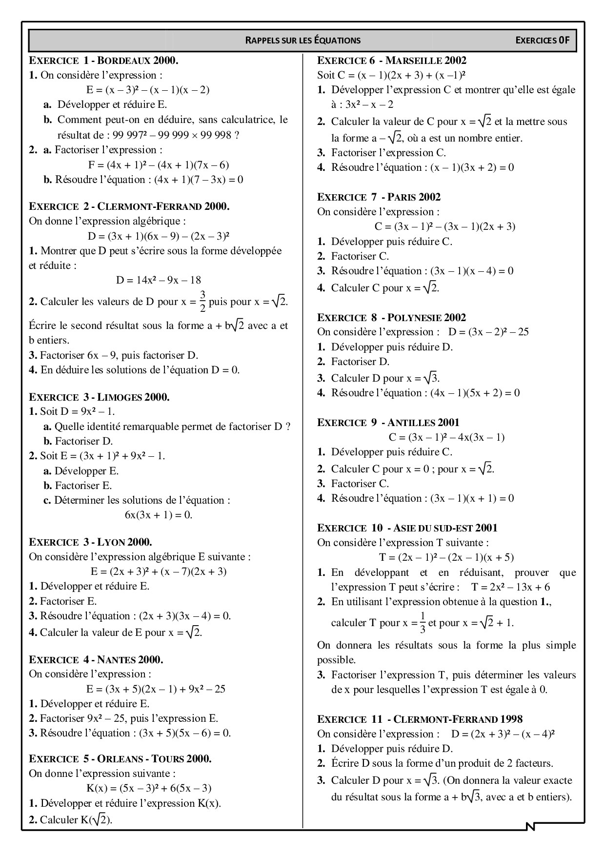 Equations avec racines carrées et subtilités - Exercices