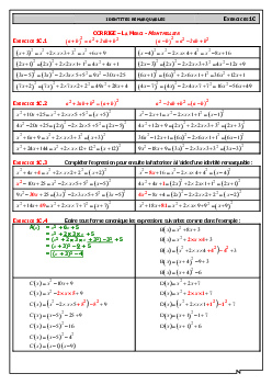 Identités remarquables et forme canonique - Corrigés d'exercices