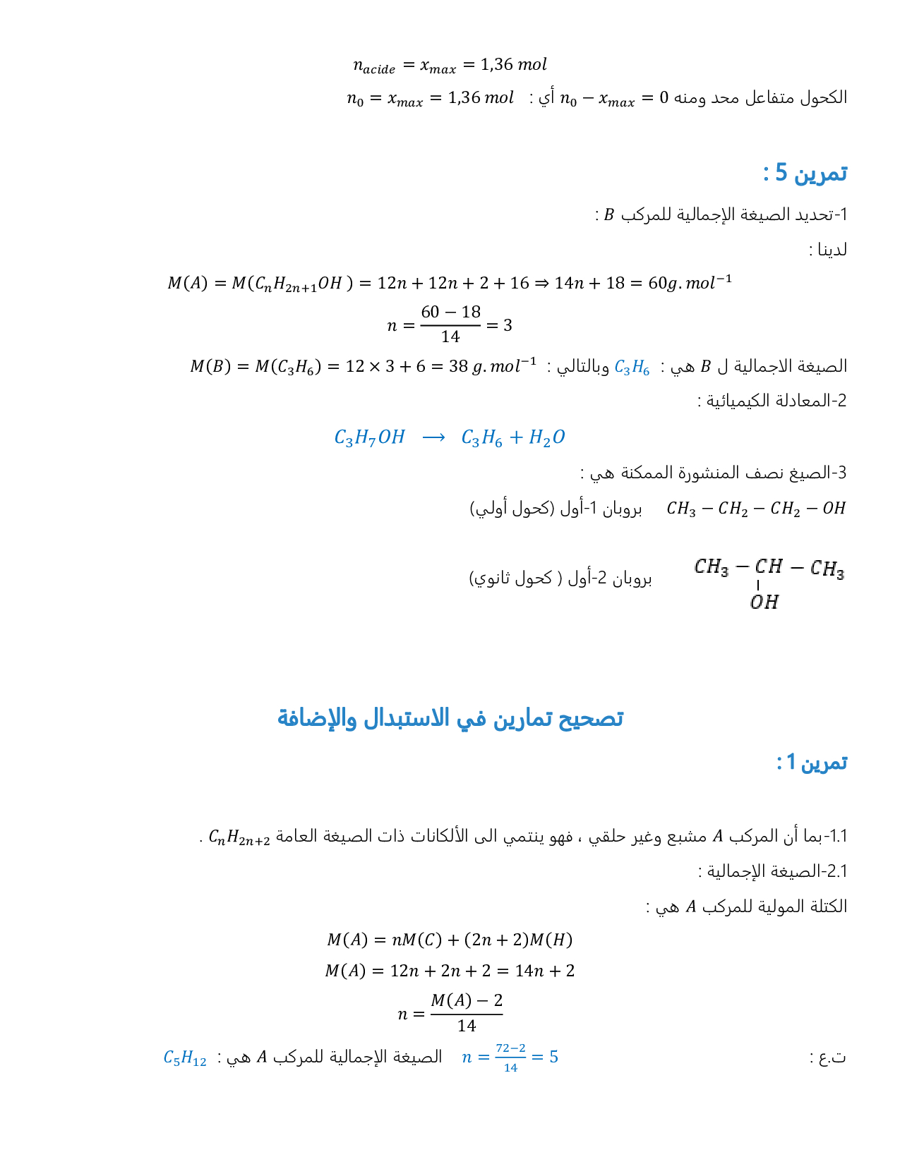 المجموعات المميزة في الكيمياء العضوية - تصحيح سلسلة التمارين 1