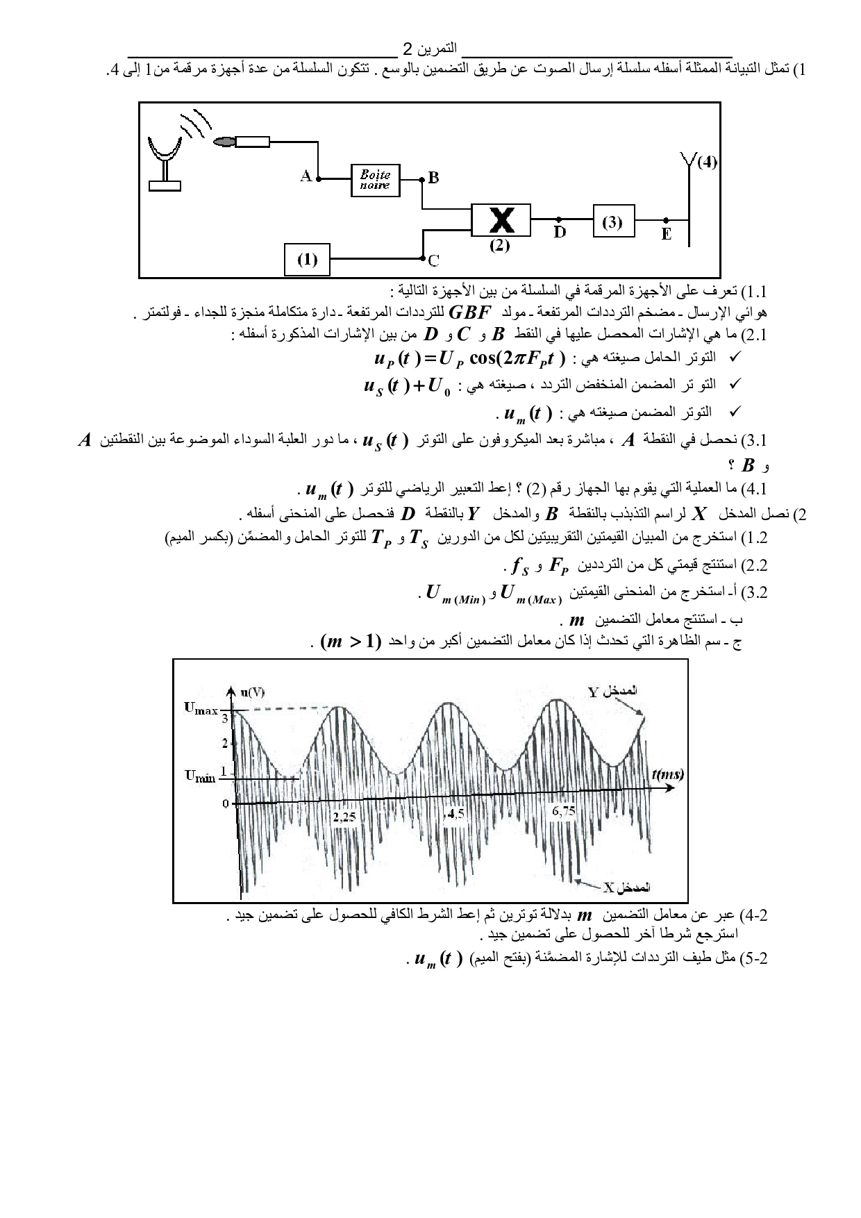 الموجات الكهرمغنطيسية ونقل المعلومات - تضمين الوسع - تمارين غير محلولة 1
