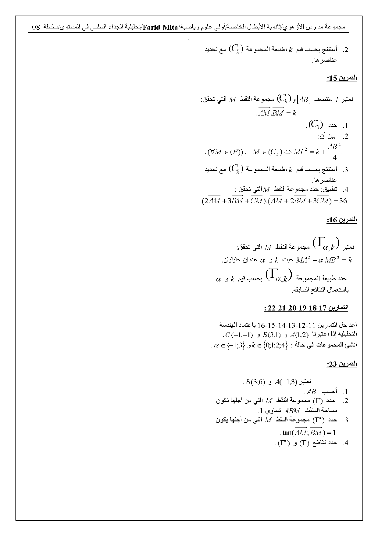 تحليلية الجداء السلمي وتطبيقاته - تمارين غير محلولة 2