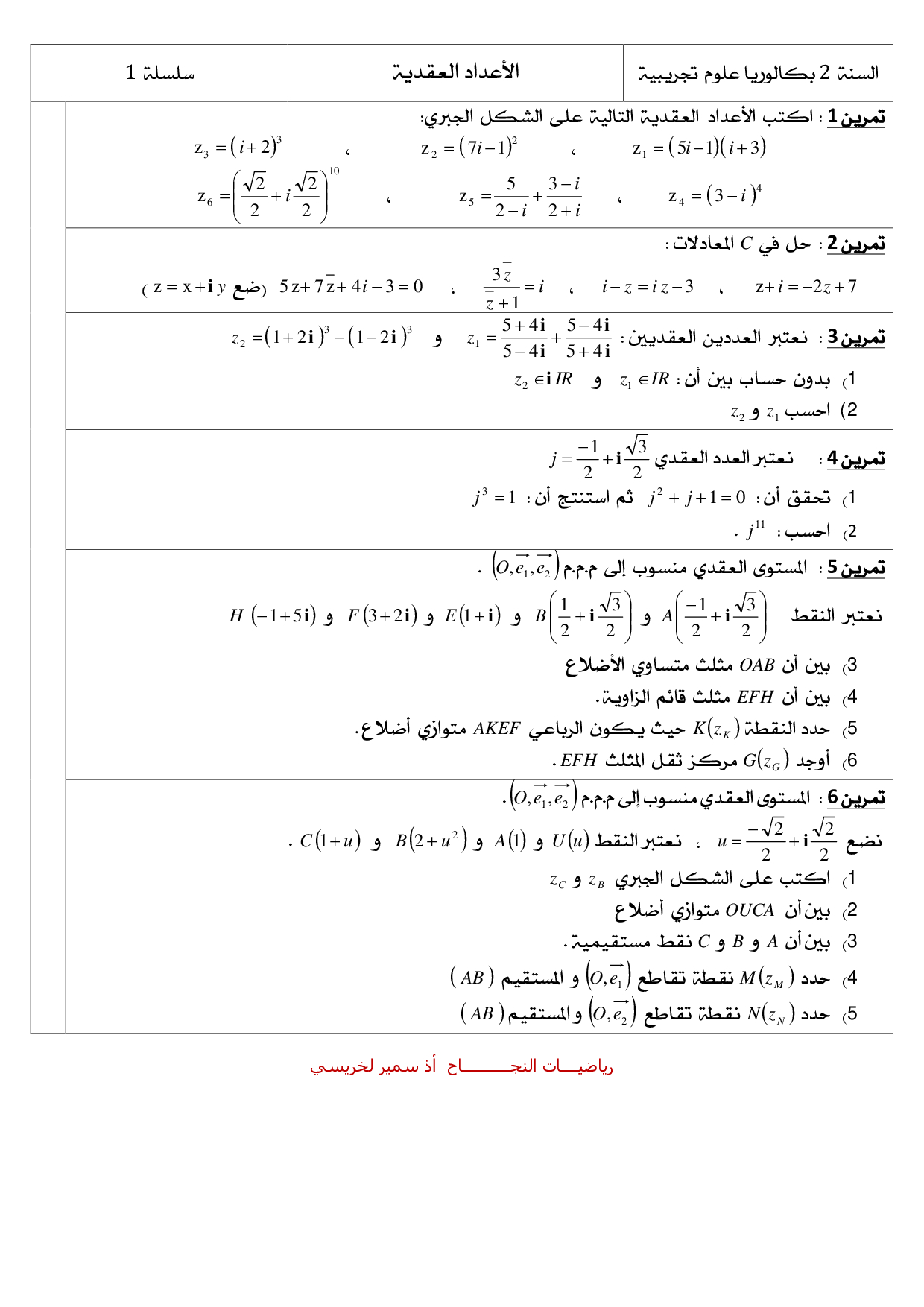 الأعداد العقدية 1 - سلسلة التمارين 2