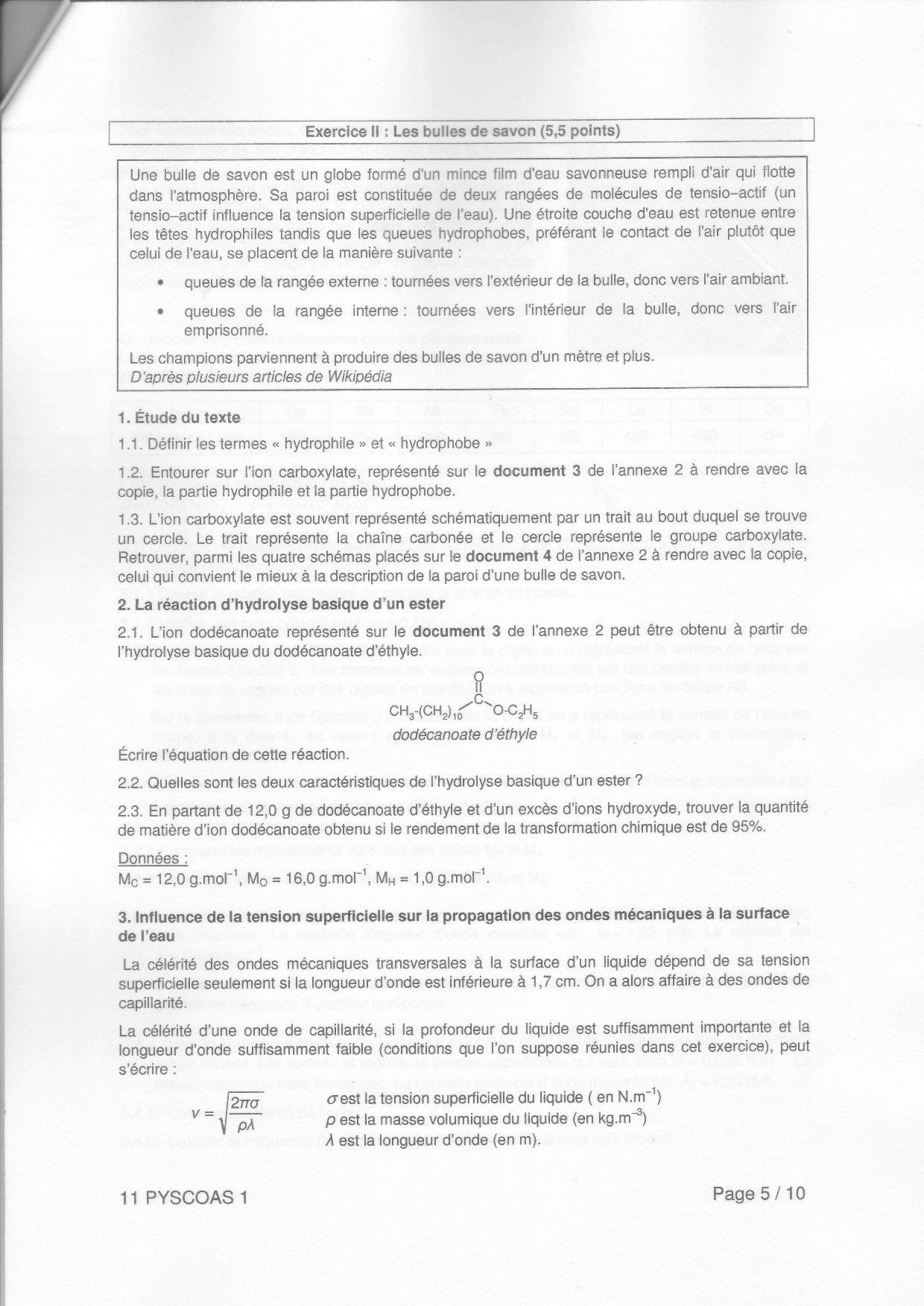 Bac S Physique Chimie Amérique du Sud 2011 - Sujet