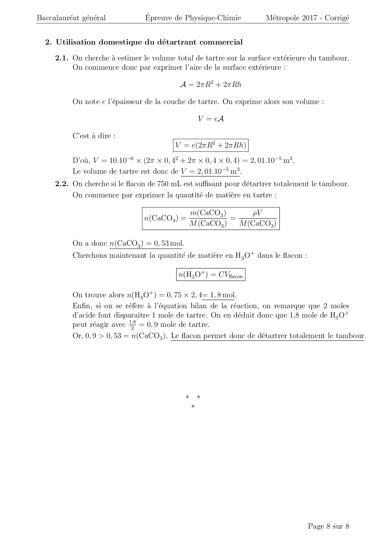 Bac S Physique Chimie Métropole 2017 - Corrigé