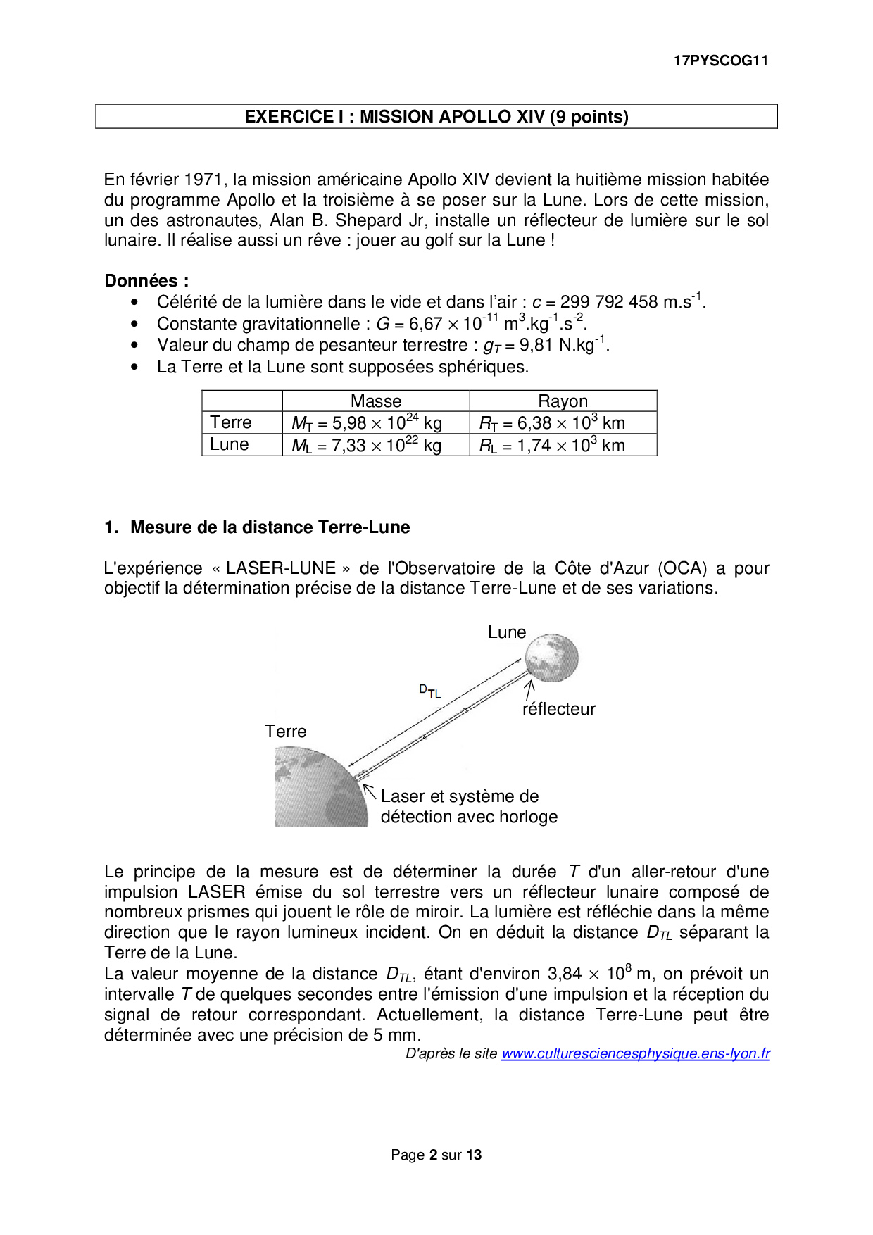 Bac S Physique Chimie Centres Etrangers Afrique 2017 - Sujet