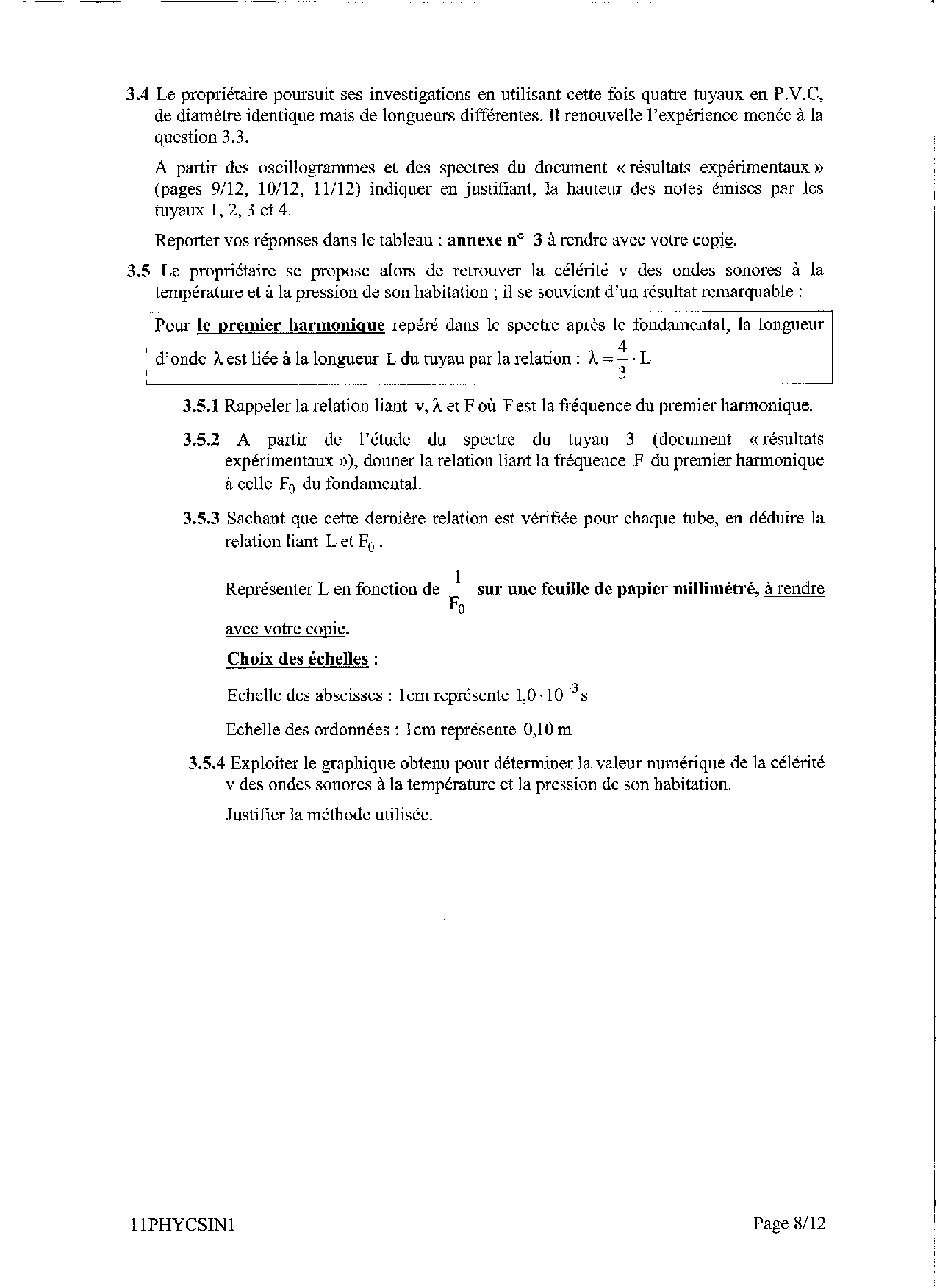 Bac S Physique Chimie (Spécialité) Pondichéry 2011 - Sujet