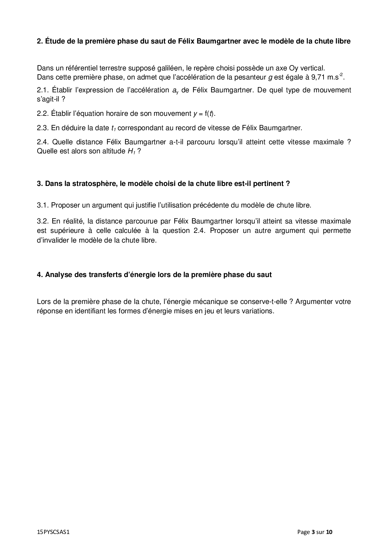 Bac S Physique Chimie (Spécialité) Amérique du Sud 2015 - Sujet