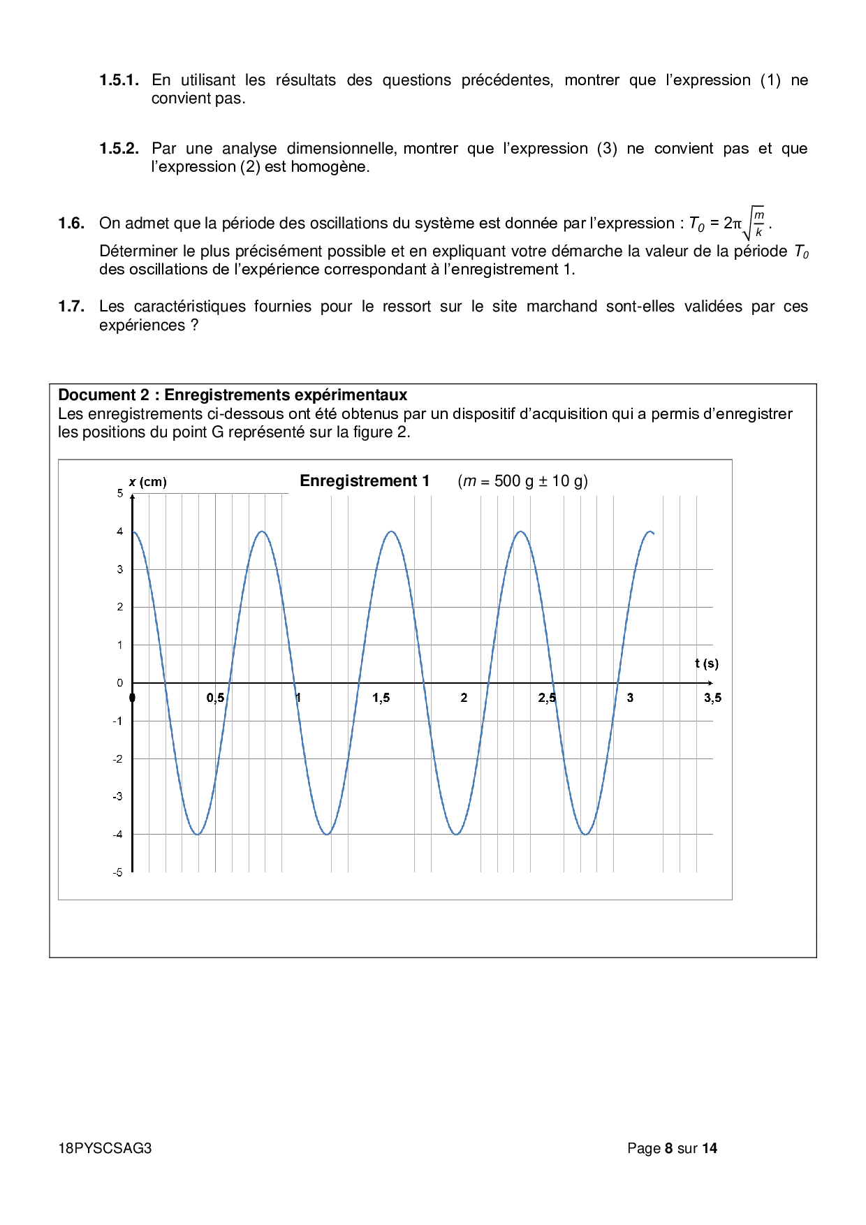 Bac S Physique Chimie (Spécialité) Antilles-Guyane (Session de remplacement) 2018 - Sujet